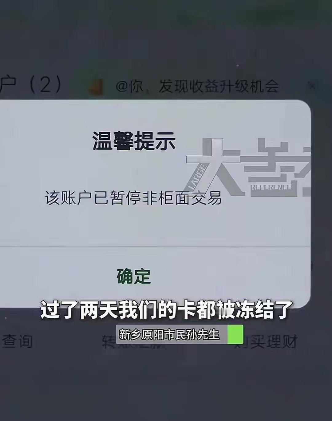 钱货两空!农民卖粮所得资金被冻结,专业律师给出回应。 业内知名律师针对此等情况给出建议: 如果资金涉及案件,相关单位有权对资金账户进行冻结,以防资金用于犯罪活动。 农户应尽快联系冻结资金的相关单位,提供相关证明,证明资金是正常所得,资金才有可能被解冻。 如果资金确实涉及到案情,恐怕情况就比较复杂了。 虽然律师给出了可行性的建议,但是个人认为希望不大。 如今这件事的热度已经持续好多天了,为什么大家都比较关注这件事呢? 因为诈骗实在是害人不浅,身边被骗的人数不胜数。 现在关注这件事的不仅有我们这些平头老百姓,还有另外的一部分人。 我们平头老百姓关注这件事是因为我们想要知道遇到这种情况该如何应对,或者如何避免这种被骗的情况出现。 相关单位不妨把这件事当做典型,做一次防范类似诈骗手段的普法宣传。 另外一部分关注这件事的是什么人呢? 当然是诈骗人员! 他们也在时刻关注这件事如何解决,如果资金一扣了之,后续不再跟进,那么将会是诈骗分子的狂欢。 他们将不再有任何顾虑,放心大胆地采用这种方式祸害老百姓。 所以,希望能够谨慎处理。 大家有没有什么好的办法应对这种情况呢?