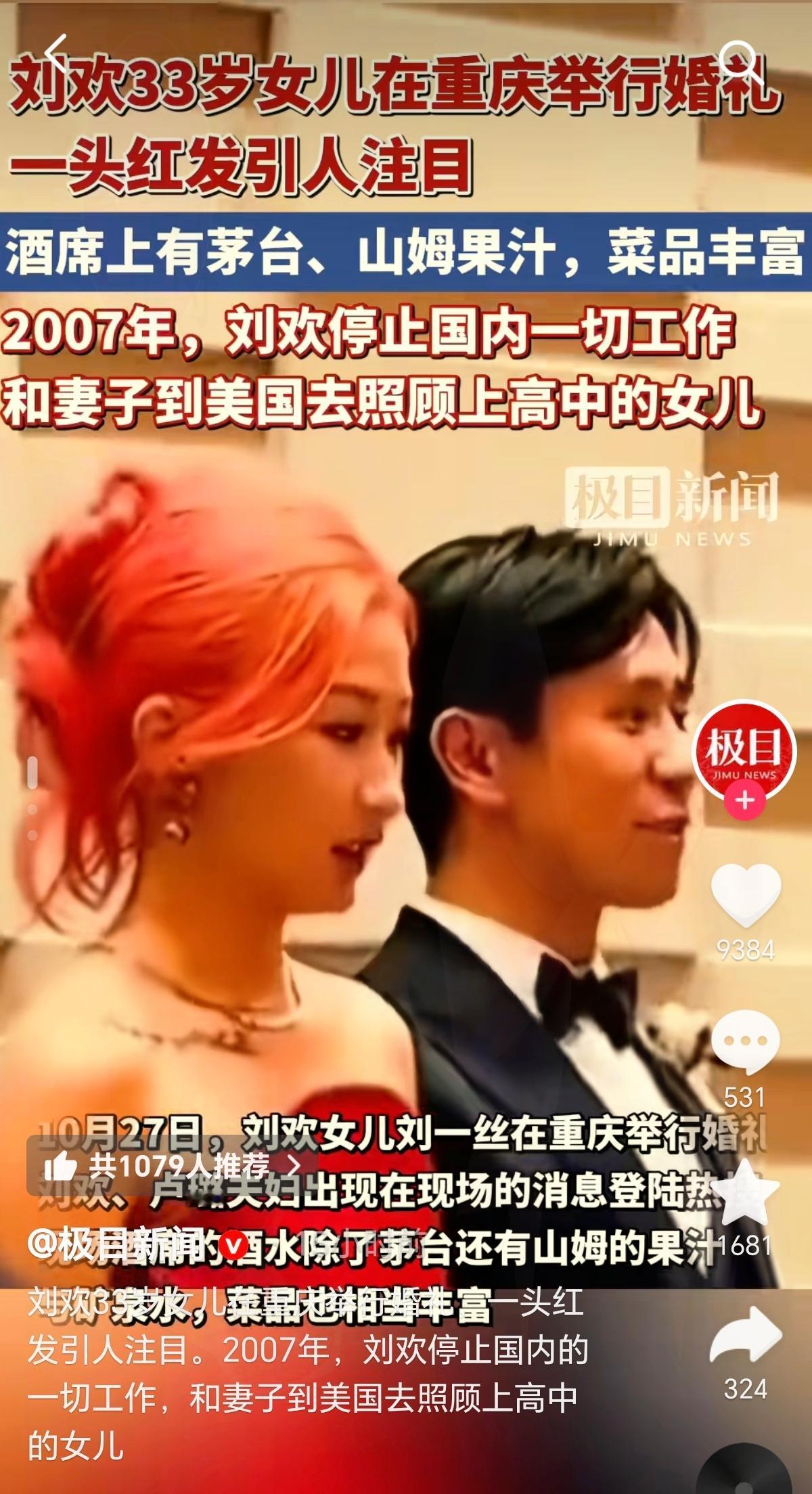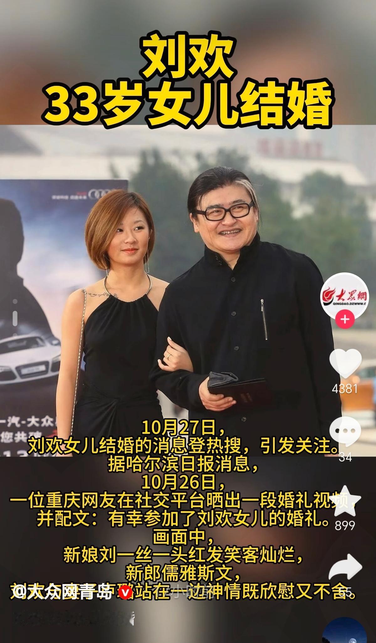 刘欢女儿大婚引争议?比起红发纹身,这才是真的戳心 刘欢女儿结婚这事,评论区吵翻了天。有人盯着新娘的红发纹身挑刺,说不像“好女孩”,连刘欢穿得朴素都被嫌“不上档次”,真觉得有点离谱。 这场婚礼明明藏着最动人的细节啊。62岁的刘欢躲在角落,看着女儿偷偷抹眼泪,发言只说“谢谢大家”声音都在抖,散场后还在找女儿留学时用的旧箱子。这哪是乐坛泰斗,就是个舍不得女儿的普通老爸。 新娘刘一丝也超酷,纽约大学毕业拿过摄影奖,从不蹭爹的热度,婚礼怎么舒服怎么穿。人家父母都支持的个性,轮得到外人说三道四? 其实大家该看的,是刘欢夫妇那种松弛的爱——不催婚、不控制,把选择权还给孩子。这种家庭养出的独立女孩,比所谓的“规矩”珍贵多了。你觉得这场婚礼最打动人的是啥?刘欢 刘欢女儿结婚