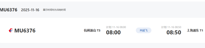 记者从东航官网上查询到,11月16日起,杭州新开通直飞上海的短途航班,航班号是MU6376。