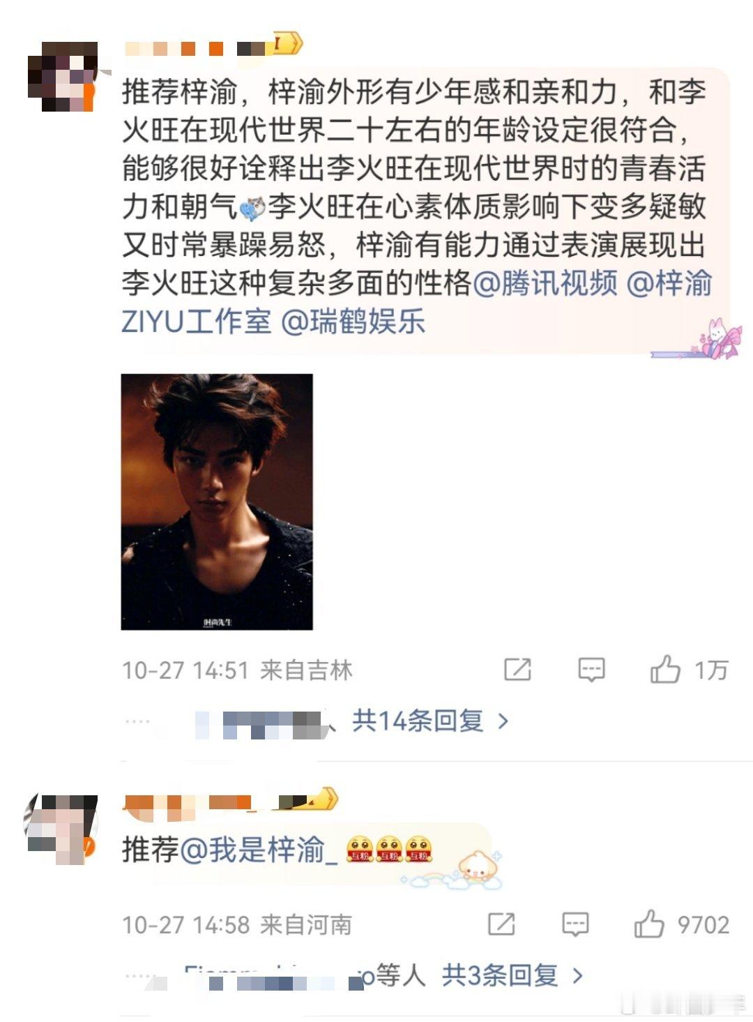 粉丝推荐梓渝演火旺 鹅厂《火旺》刚释出概念海报,粉丝就集体提名梓渝,这期待值拉满了!角色要的癫狂与迷茫超考验演技,但梓渝总能把角色的层次感挖出来,要是能演,绝对能让火旺这个角色活起来!
