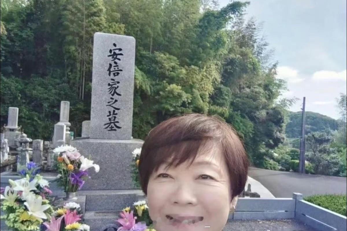 安倍遇刺案今天开庭安倍晋三遗孀安倍昭惠每次给他上坟的自拍照片……