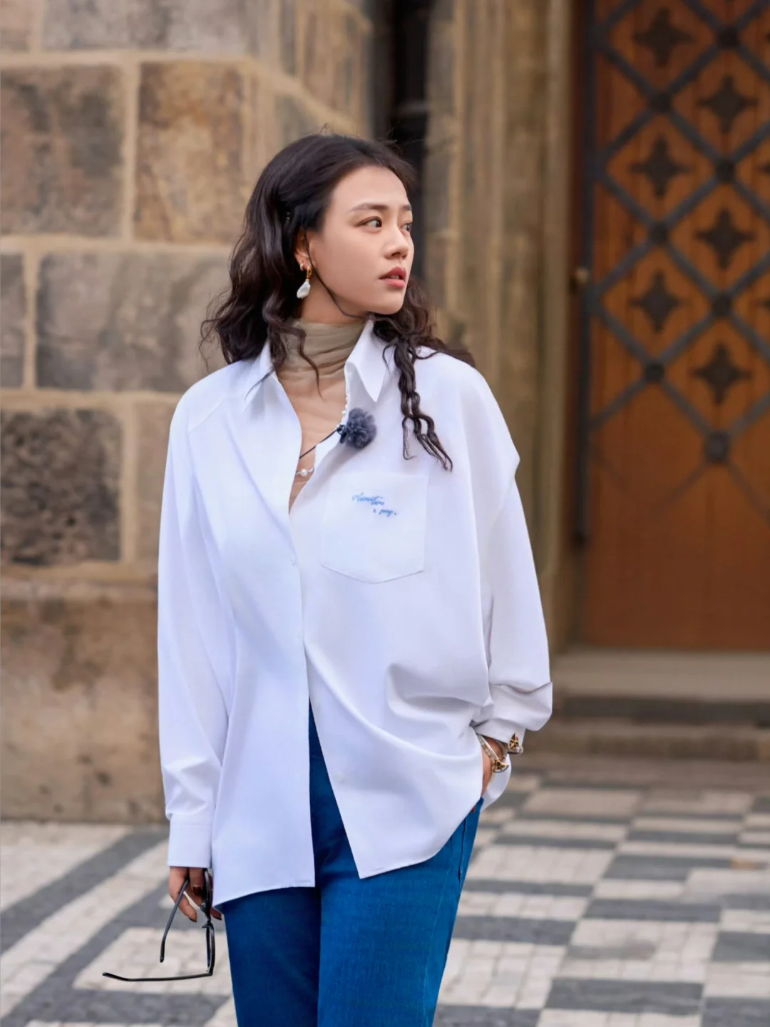 1988年,27岁的陈冲在上海街头,好喜欢这种年代感,穿的衣服现在也不过时