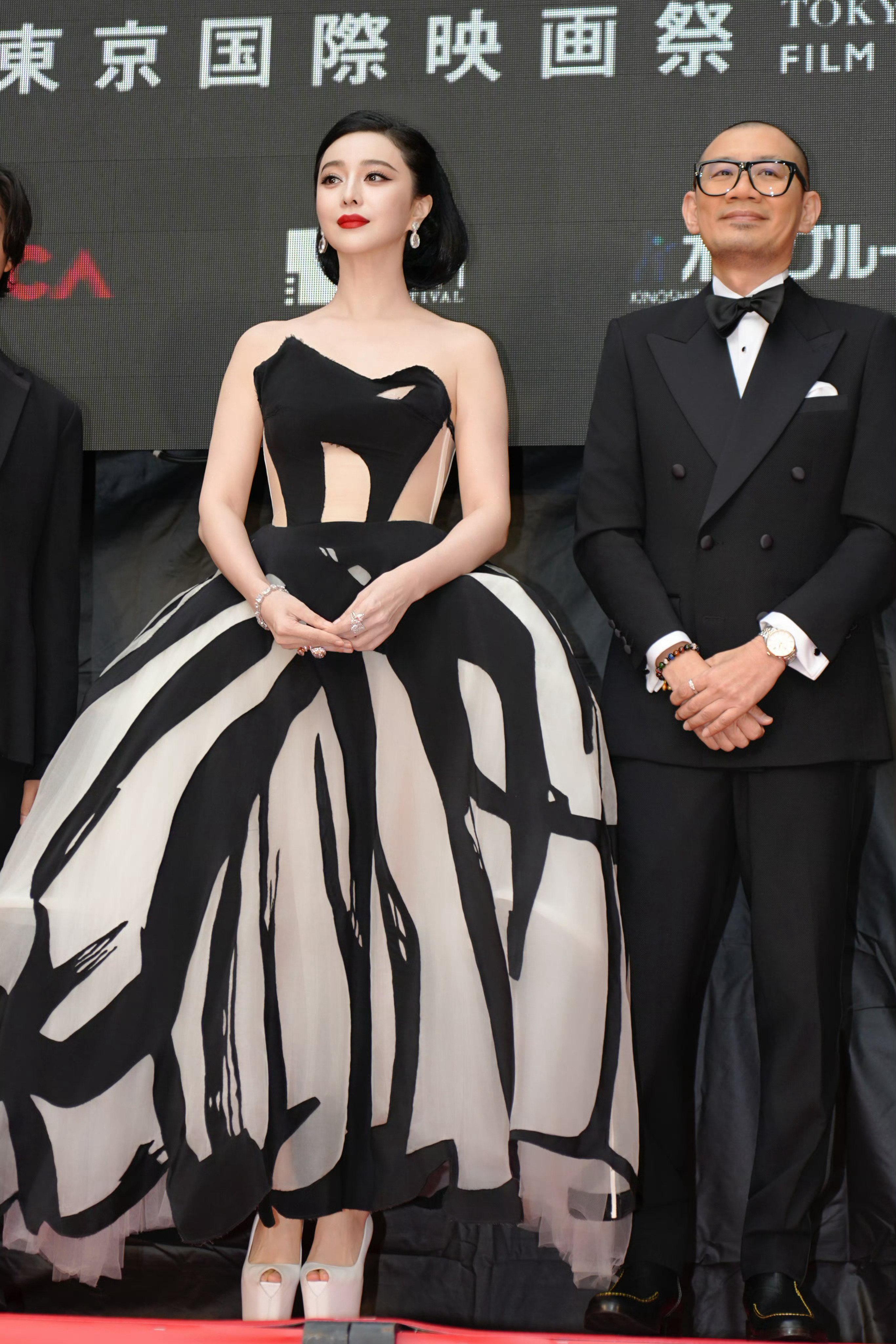 张天爱跟素人合影,胯真的好宽,大宅院似的