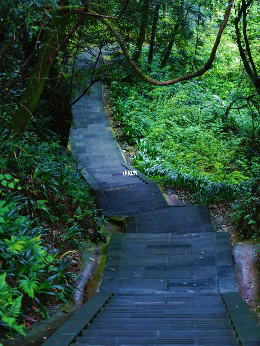 3⃣登山道中古木参天,以石梯和青石板为主,曲径通幽,不晒太阳