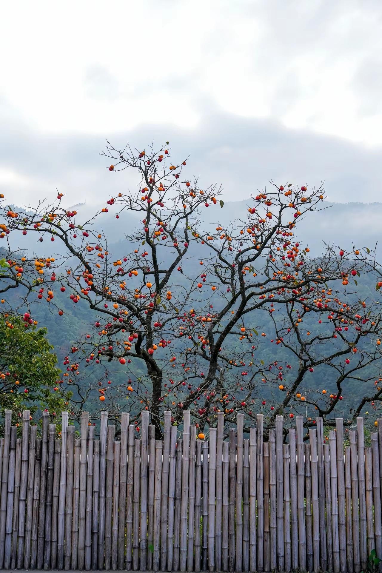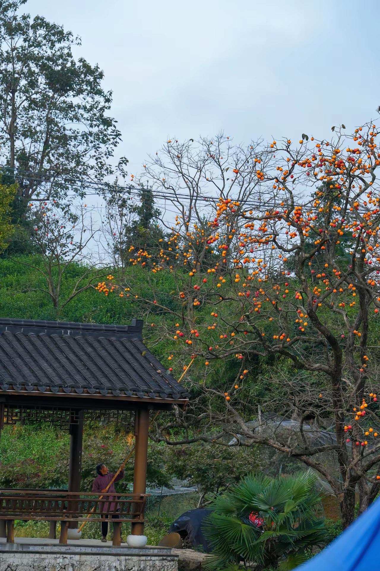 景是美景,树上的柿子熟了,咋没人摘呢?秋天的柿子秋日里的柿子红院里的柿子