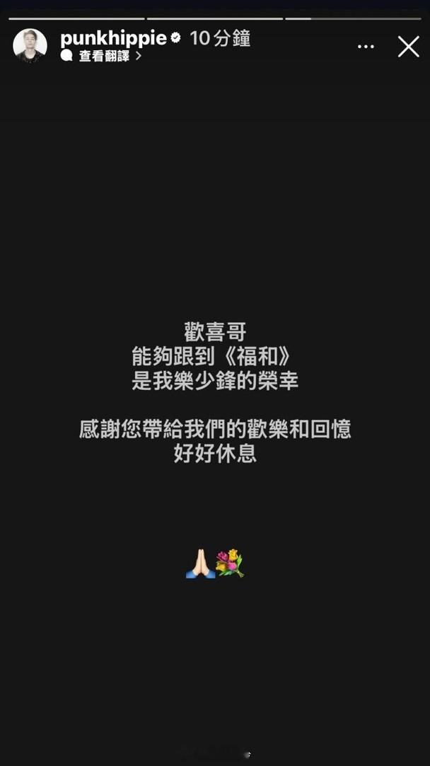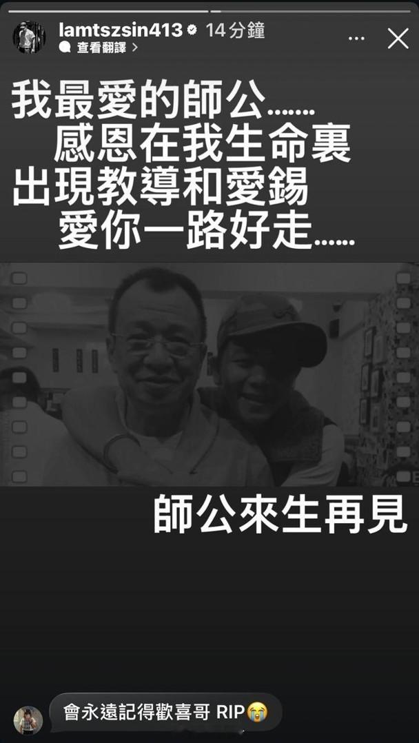 林子善:「我最愛的師公………………感恩在我生命裏 出現教導和愛錫 愛你一路好走………………師公來生再見 會永遠記得歡喜哥 安息吧」