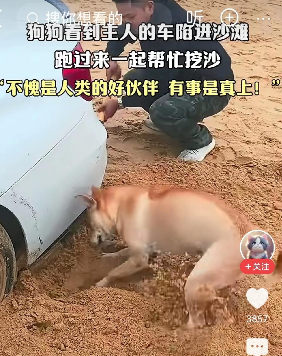 这个狗没有白养!关键时刻很靠谱 主人带着家人和狗狗一起出门旅游。旅途中,车子陷进沙滩中出不来。 主人下车用铁锹挖泥沙,狗狗赶紧过去帮忙。 狗狗用前爪快速刨土沙,还将身子探到车底下刨土,看着比主人还卖力。 这狗没有白养。养狗千日,用狗一时。关键时刻,狗很靠谱! 狗,绝对是忠臣!这也是有人喜欢养狗的原因! 带狗狗外出 狗狗旅游日记