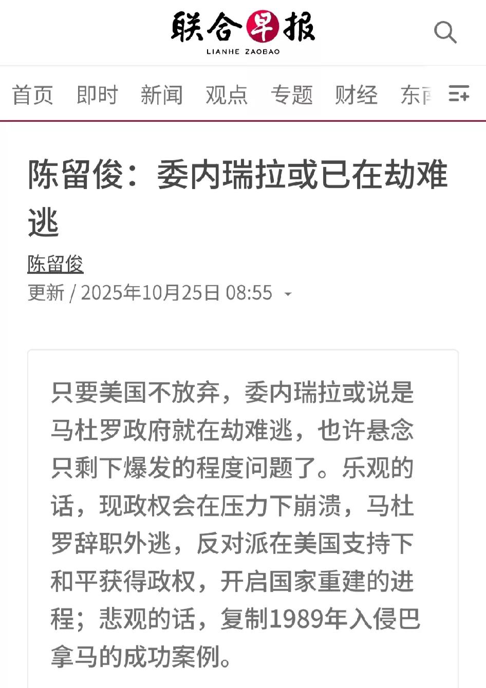 [联合早报说,马杜罗这次,大概率是挺不过去了(下图)。] 根本原因是美国不允许盟友进口俄罗斯的石油,甚至其他国家(如印度)也不允许进口俄罗斯的石油。 那么,它的盟友没石油无法生存啊。尤其是德国这类国家,以前严重依赖俄罗斯石油。现在突然不能进口俄罗斯石油了,这个缺口你美国老大得帮助补上啊。 还有印度,我现在听你话不进口俄油了,那么好吧,你得保证我的石油安全啊。 尽管美国是全球最大油气出口国,尽管海湾国家答应扩大油气产能,但仍不足以填补俄罗斯油气留下的空缺。 所以,美帝急了,这时候想起委内瑞拉。 委内瑞拉有石油啊!委内瑞拉是全球最大的石油储备国。只要把委内瑞拉干掉,石油汩汩无穷无尽,也能满足盟友的所有石油缺口了。 所以,马杜罗必须倒,这是唯一选择。