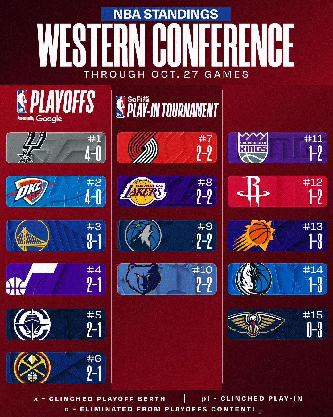 马刺、雷霆4胜0负,湖人2胜2负,火箭取得赛季首胜新赛季篮不住