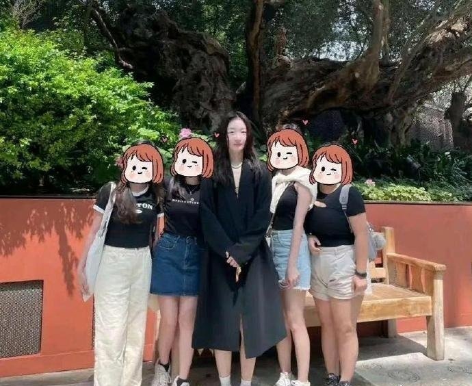 张天爱跟素人合影,胯真的好宽,大宅院似的
