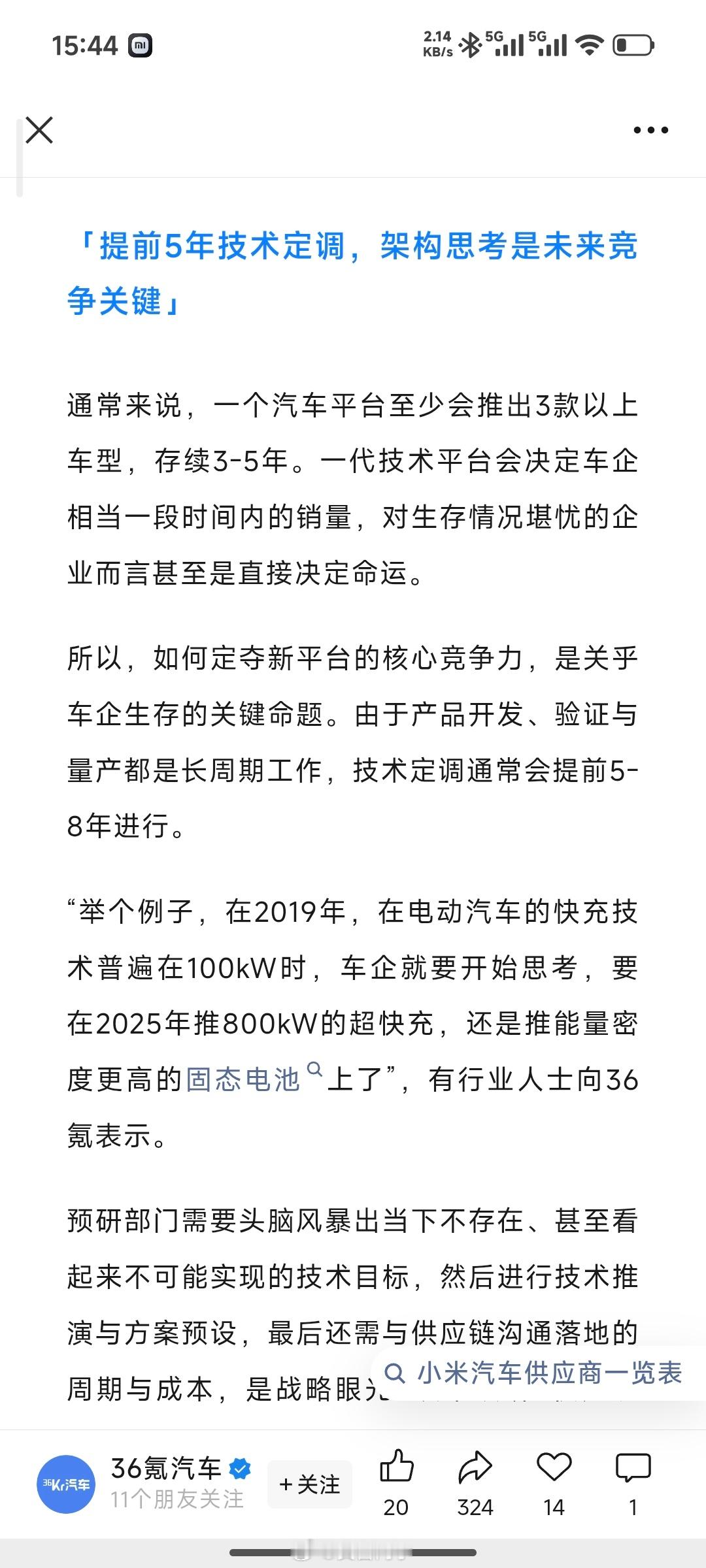 同一平台架构下,可以延伸出多款车型。造一辆车不是造一款手机,涉及到的周期也是要长很多,提前做好战略把控,以来应对技术的“不确定性”。