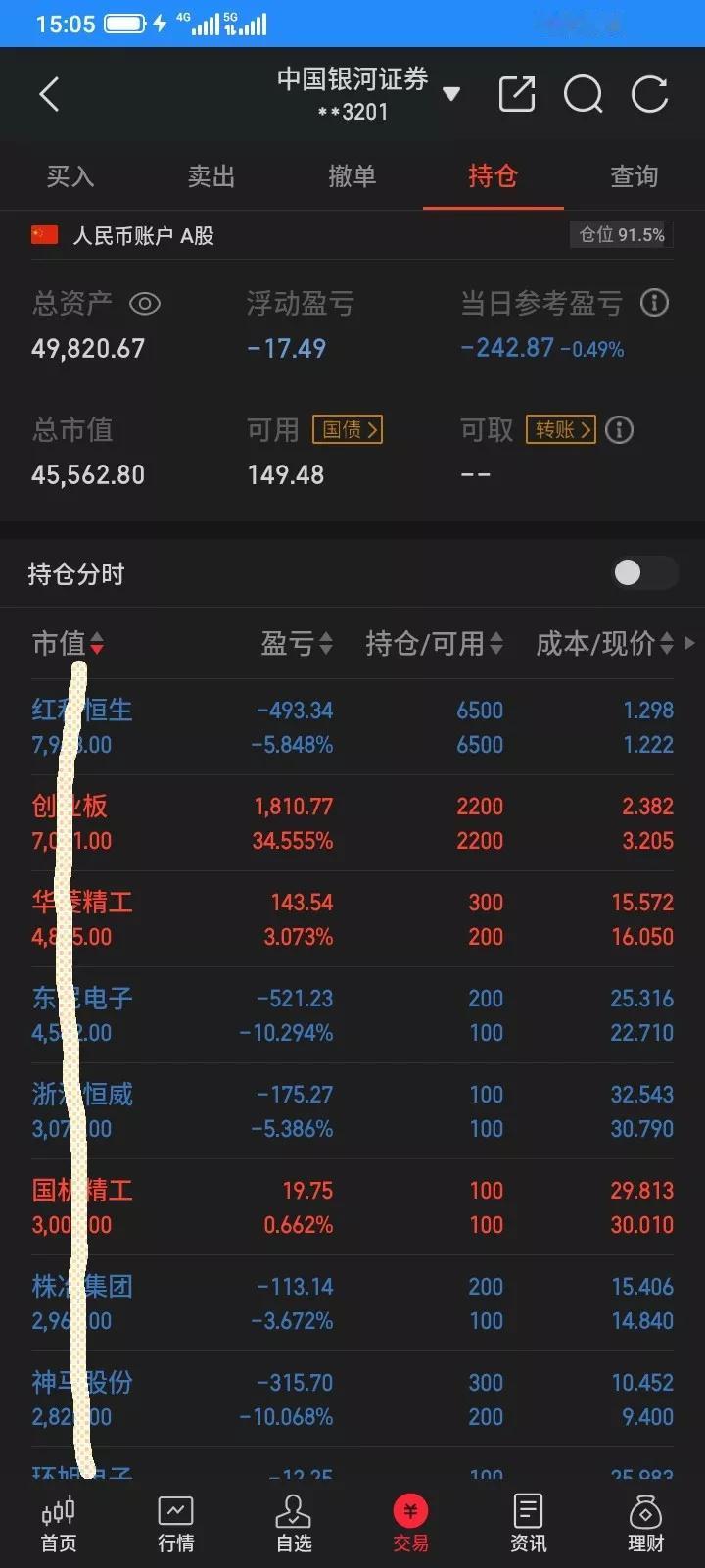 2025.10.28,今天上证指数创新高,冲过4000点,然后冲高回落,指数创新高,但是我的钱却再也回不来了,依然亏损,持有的大部分股票都冲高回落,依然下跌,从最高赚两百多块钱,到收盘倒亏了200多块,今天又是情绪化操作,没有严格执行系统,造成了亏损。今天又新建仓3只股票,止损清仓了3只股票。昨天买入的3只股票,今天都上涨了一点点,但是以前持有的重仓的股票继续大跌。 今天株冶15.37低开低走,还好昨天没有太贪心,收盘把加仓的300股t出去了,没有加仓, 不然今天讲大亏,感觉反弹无力,下跌中以15.05止损卖掉100股,反弹以15.08再止损卖掉100股,卖掉之后就反弹到15.12,还是卖错了,但是很快还是继续走下跌之路,方向还是对的,收盘以14.85买回来100股。等于止损了100股,t了100股,降低一点点成本。 运达18.22低开高走,最高冲高到18.45,又后悔昨天止损错了,但是很快就冲高回落,逐步下跌,还比昨天更低,感觉看不到希望,放弃幻想了,于是以18.03清仓止损了最后的100股,但是卖掉之后下跌了一点点,然后又冲高到18.16左右,还是卖错了,不过最终方向还是对的,收盘跌到17.78元。少亏了20多块钱,曾经赚1100多,舍不得卖,最终离场,才剩下150多块钱。赌徒离开赌桌,剩下的才是自己的。先浮盈再多都是浮云。 今天电力以27.57平开,逐步上涨,最高冲到28.33元,再创新高,想赚更多,舍不得卖,然后逐步回落,下午突然大幅快速跳水,最低跌到26.44元,差一毛多达到我的止损点,虽然没有触发止损,但是我感到很恐慌,怕继续下跌,跌停就不划算了,于是迅速以26.64清仓卖掉了100股,唉,恐慌过度,没有严格执行自己的计划,冲动性的卖出,情绪化的操作,卖掉之后马上又快速上涨了,少卖了100多块钱,都是贪心惹的祸,28块多舍不得卖,26块多卖掉,后悔不已,但是上涨了又不能高价再买回来吧。浮盈最多的时候赚400多,离场才剩290块钱,赚钱总比亏钱好。自我安慰吧。资本不眠,不能闲置,马上以25.98买入100股环旭,但是一错再错,买贵了,到收盘,又多亏了十多块钱。 看到东尼创近期新高,于是以22.70买入100股,想等收盘上涨,赚个差价,但是还是错了 成交之后继续下跌,反弹无力,收盘前以22.70卖掉100股,亏了一块多印花税和佣金,亏一块多也无所谓。错了就及时纠正错误,避免一错再错。 神马真是神,指数天天上涨,它天天下跌,今天又低开低走,大跌,下跌中以9.53元止损卖掉100股,反弹中以9.55再止损卖掉100股,卖掉之后跌幅不大,感觉可能离底部不远了,收盘以9.40买回来100股,等于t了100股,止损了100股,时刻不要忘记风险,错了及时止损,不再死扛,留下一部分吧。今天这只股票又多亏了100多块钱。株冶也是,一直舍不得清仓止损,今天多亏了160块钱。 前几天买入的天沃今天继续下跌,还是买错了,放弃幻想,及时止损出局吧,收盘前以8.79清仓止损卖掉了100股天沃,持有3个交易日,亏了40多块钱。 低价止损了的红利最近一直上涨,还是止损错了,再创新高,还是补仓一点吧,于是以1.223加仓500股,又加错了。 前几天买入的华菱又上涨,看来买对了,乘胜追击,今天以15.96再追高加仓100股,到收盘多赚几块钱。 昨天新建仓的3只股票,雄韬反弹上涨几分钱,国机大幅冲高回落,反弹上涨了一点点,联翔高开低走,然后触底反弹,收盘收在最高价,上涨了一点点。 收盘以13.40新建仓买入100股国泰。 今天总体新建仓2只股票,环旭和国泰。清仓3只股票,运达,电力,天沃,今天总市值4.55万元,转出1200块钱用于日常生活,总资产4.98万元。今天总体账户亏损242元。上证指数 指数要冲高 股大盘指数 股市指数 大盘收盘 收盘指数 指数拉抬