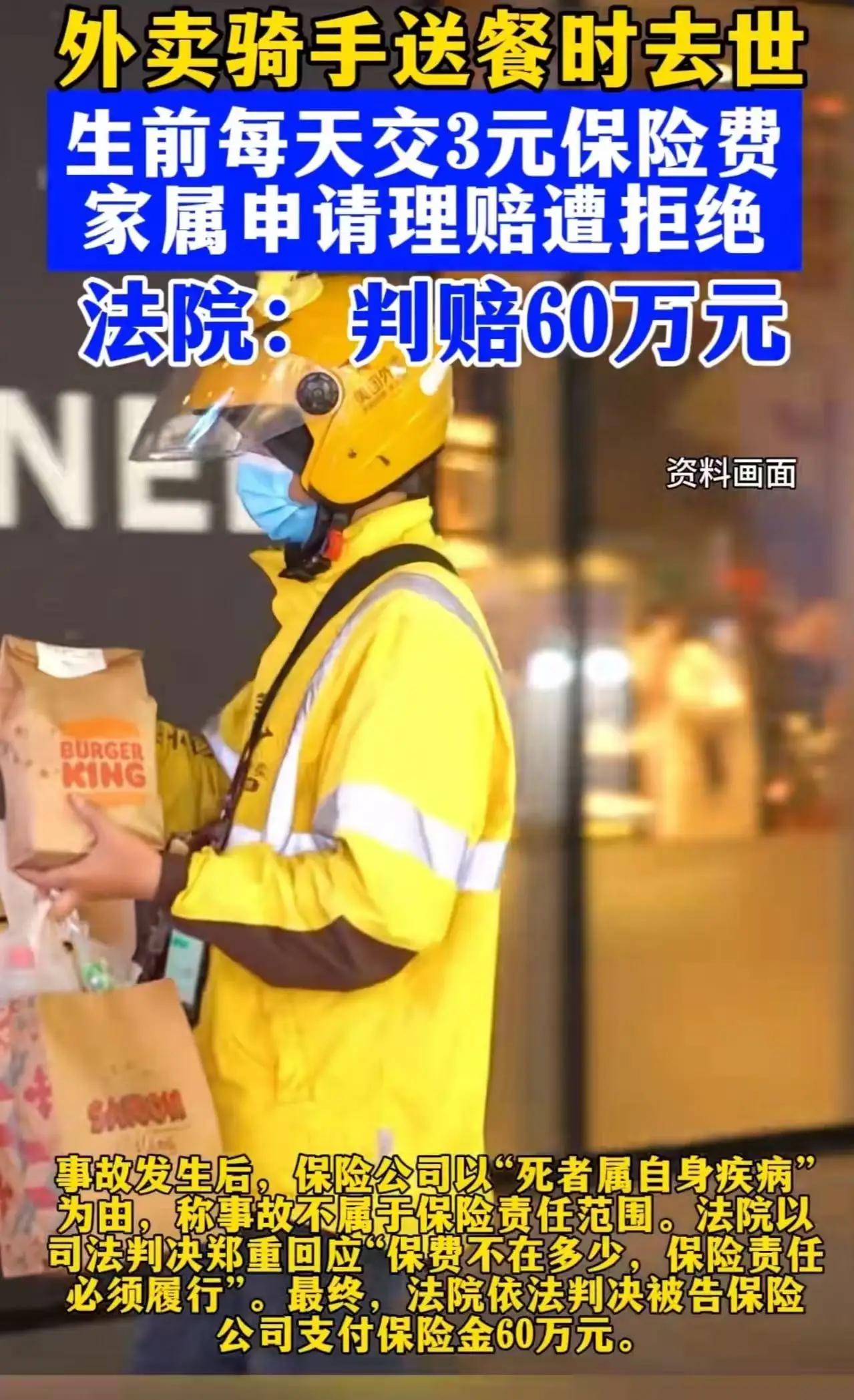 “这次保险公司输了!”郑州,外卖骑手送餐时去世,每天交3元保险费,却遭保险公司拒