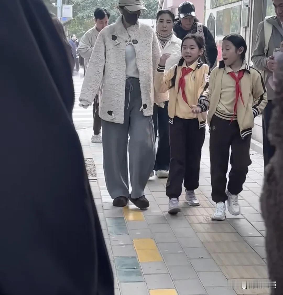 董璇和妈妈去接小酒窝放学,董璇穿着宽松,一件外套配阔腿裤,小酒窝一边走一边和妈妈说着话。 看小酒窝的胳膊上戴着“三道杠”,最少也是个中队长吧。[呲牙]看来她不仅才艺出众,学习肯定也不错。 走在后面的姥姥,拿着书包静静的跟在后面,记得董璇说过,小酒窝从小到大基本上都是姥姥带着,姥姥是真不错,付出最多。感觉小酒窝有现在这么好的性格,肯定跟姥姥的教育分不开呀!