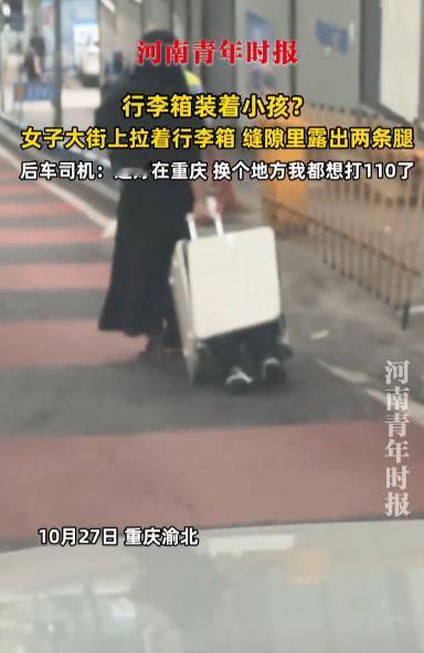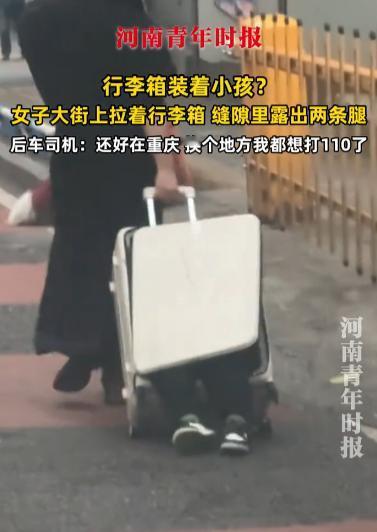 “笑不活了!”10月27日,重庆渝北,一女子在大街上拉着行李箱,行李箱没有拉严实,缝隙里居然露出了两条孩子的腿,这可把后车的司机吓了一跳,网友:在别的地方可能要报警,在重庆估计就是小孩走累了! 小孩子走累了往往会叫家长抱着,如果此时家长也很累,不想去管孩子,那他大概率会在原地又哭又闹,这也让不少家长愁得头疼。 一女子拉着行李箱走在大街上,路上的司机注意到行李箱时被吓到了,只见女子的行李箱没有拉严实,从缝隙中竟然伸出了两条孩子的腿,看样子行李中装了一个小孩。 女子在前面拉拽时,这两条腿就一动不动垂在那里,只有行李箱的颠簸腿才微微动一下,最主要的是,路人看到竟然没有觉得奇怪。 由于行李箱的盖遮挡住了孩子的上半身,无法看到孩子的脸,后车司机刚想报警,突然意识到这里是重庆,他心中的疑惑瞬间烟消云散。 重庆多陡坡梯坎,婴儿车难推行,行李箱万向轮却十分方便,还能装孩子的随身物品,一物两用,一些家长确实会采用这种“离谱”的做法。 不少网友表示,这种事在别的地方看到可能要报警,要是在重庆,那这个孩子就是单纯走累了! 信息来源:《行李箱装着小孩?女子大街上拉着行李箱,缝隙里露出两条腿》观象视频
