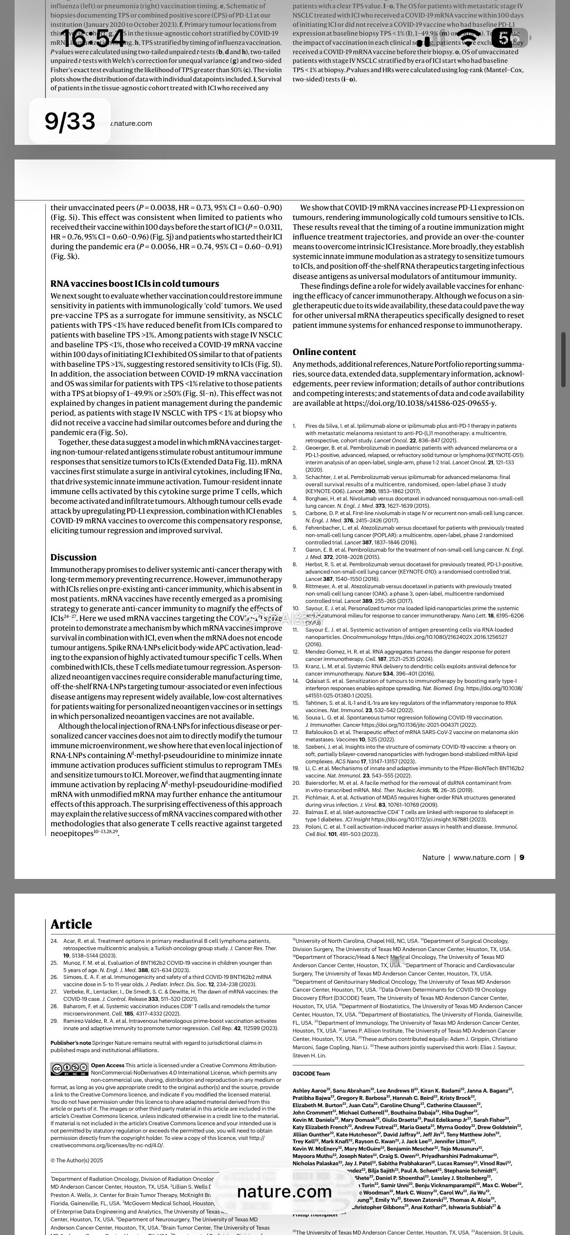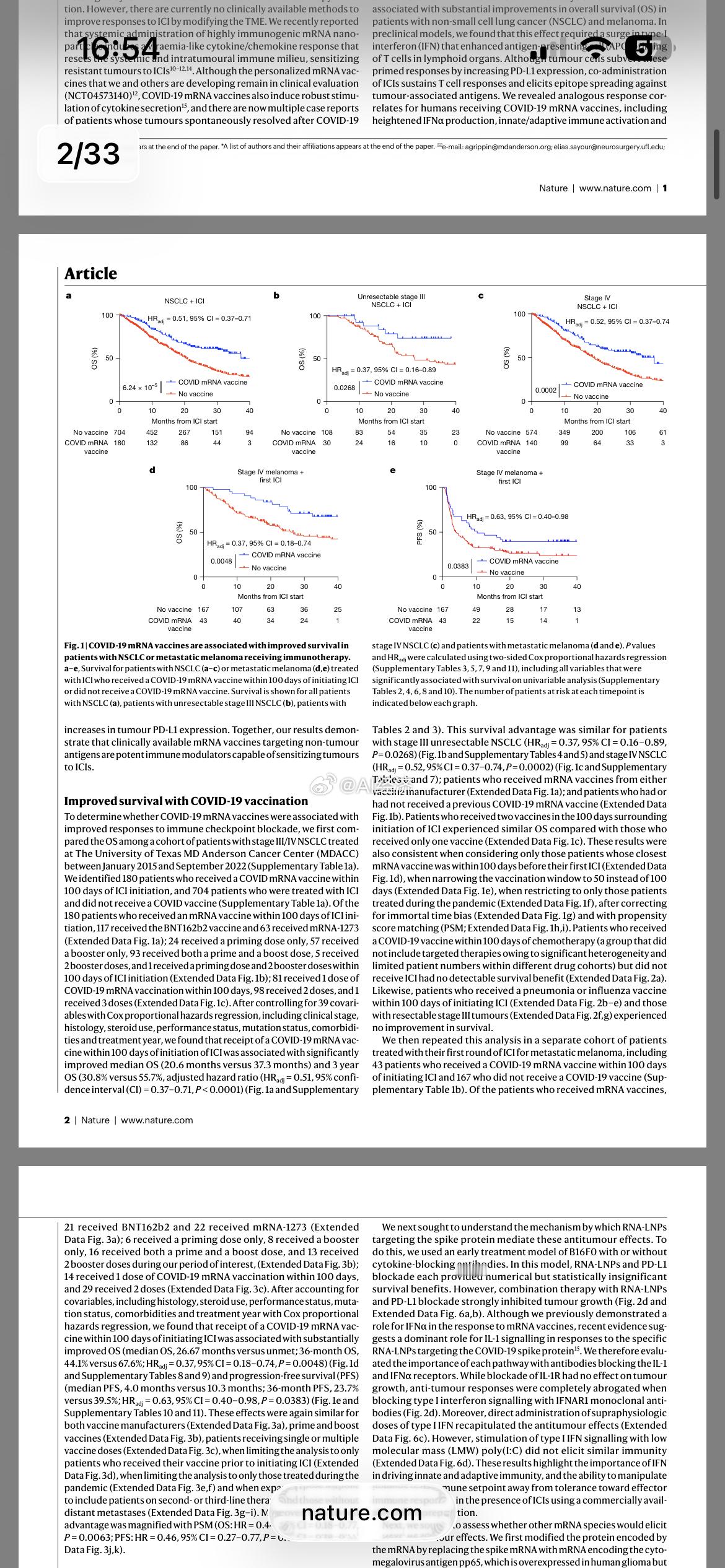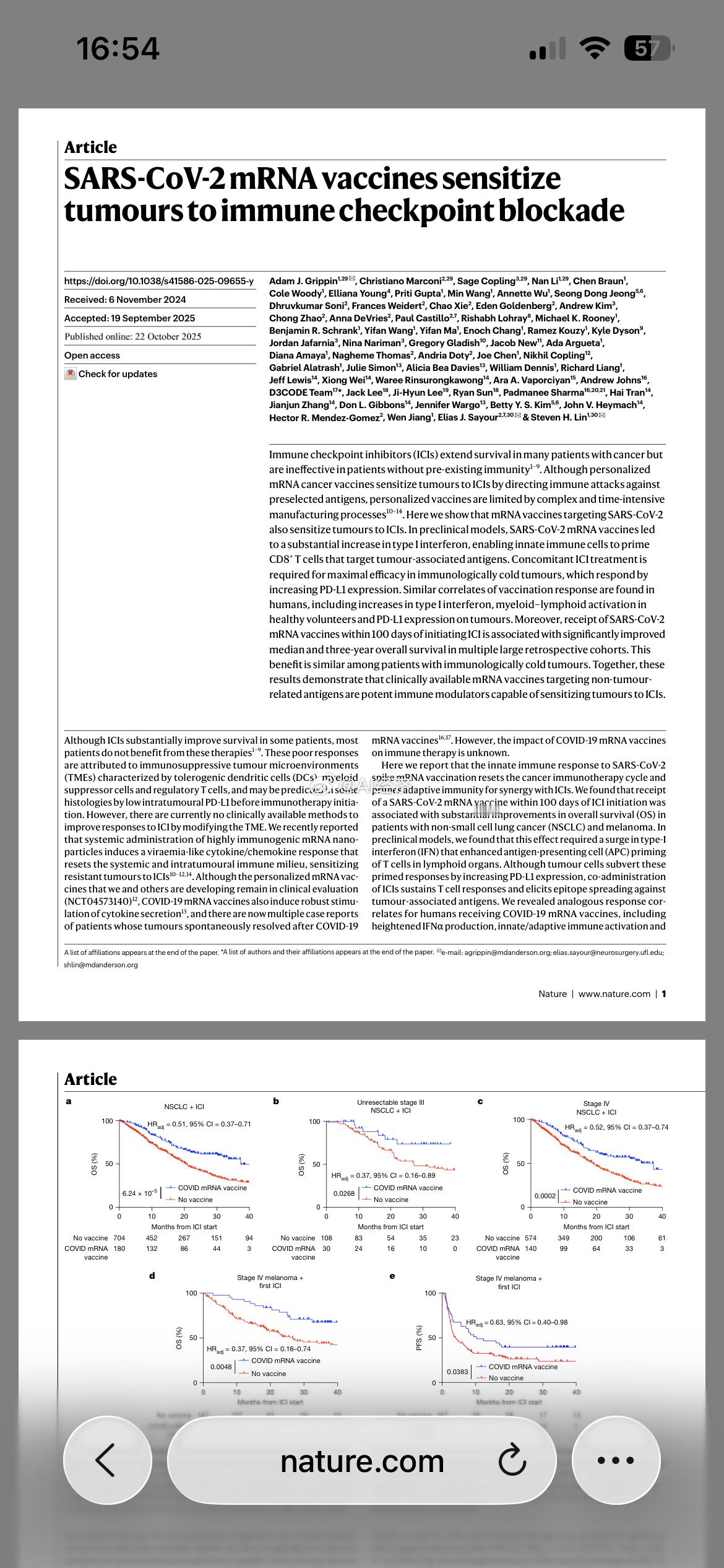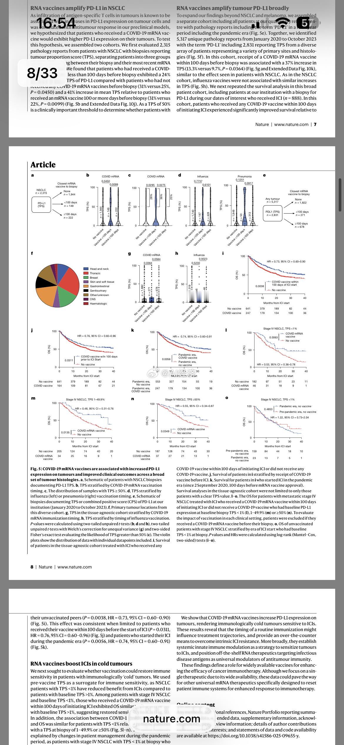 近期《自然》杂志发表的一项突破性研究揭示了mRNA新冠疫苗在癌症治疗中的意外疗效,主要发现如下: