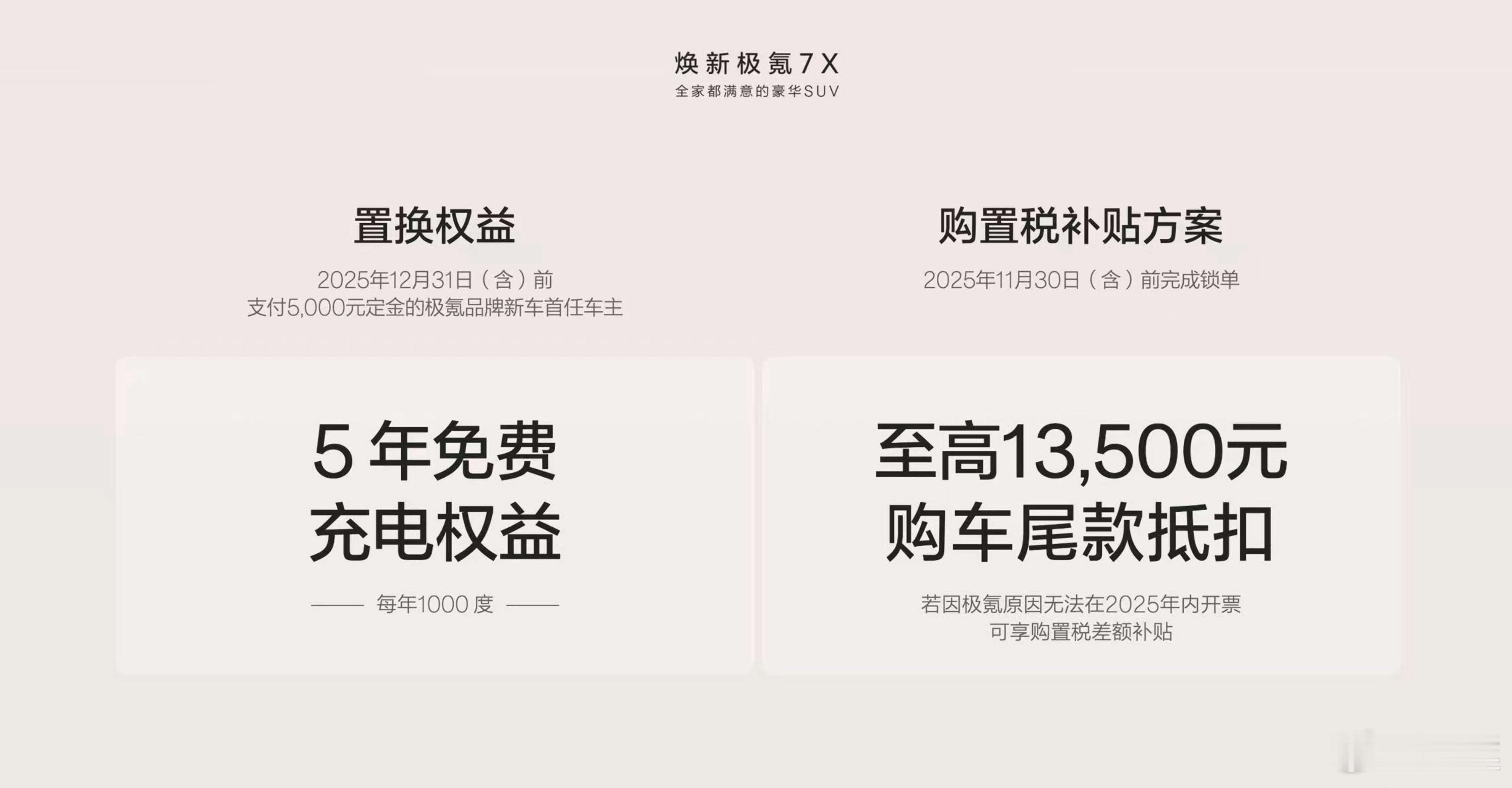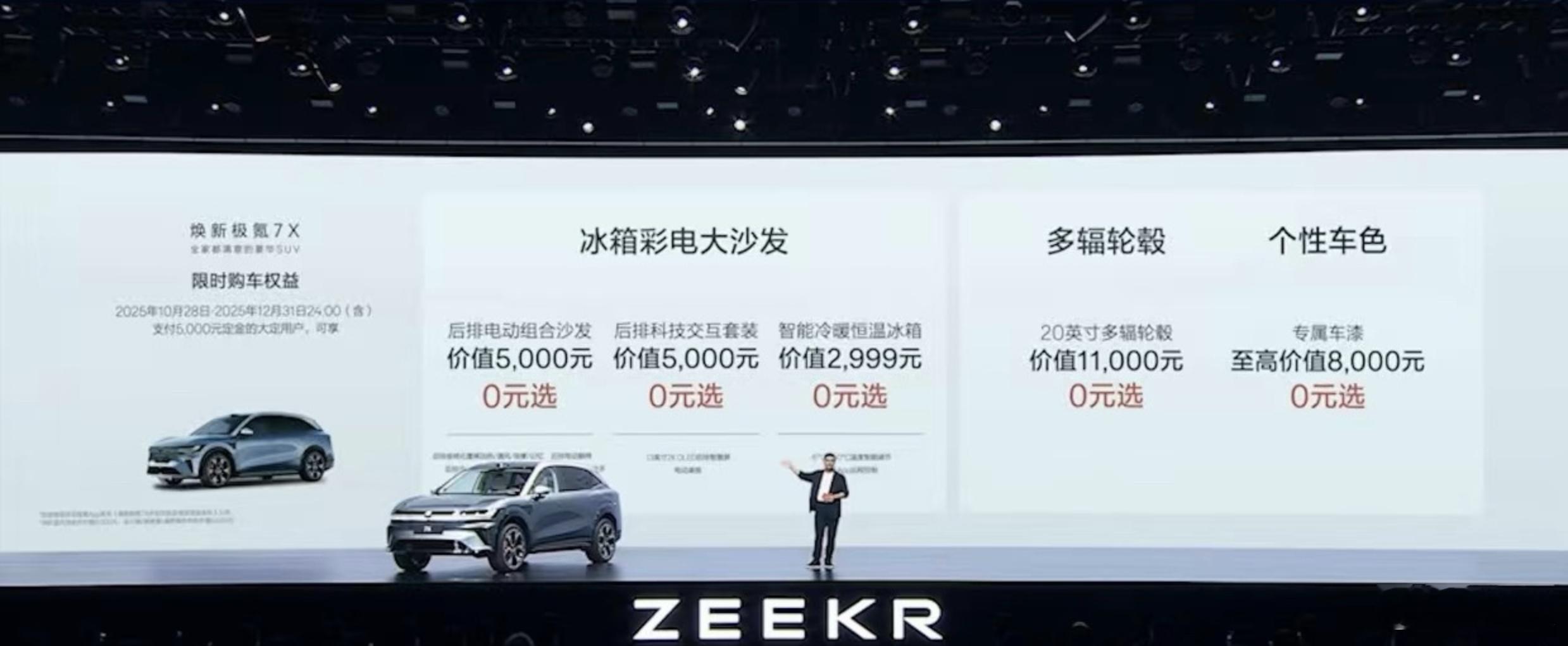 焕新极氪7X的价格来了,2种续航选择3个车款,官方指导价为22.98-26.98万元,限时优惠价为21.98-25.98万元。