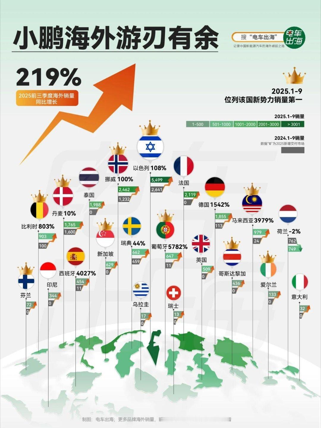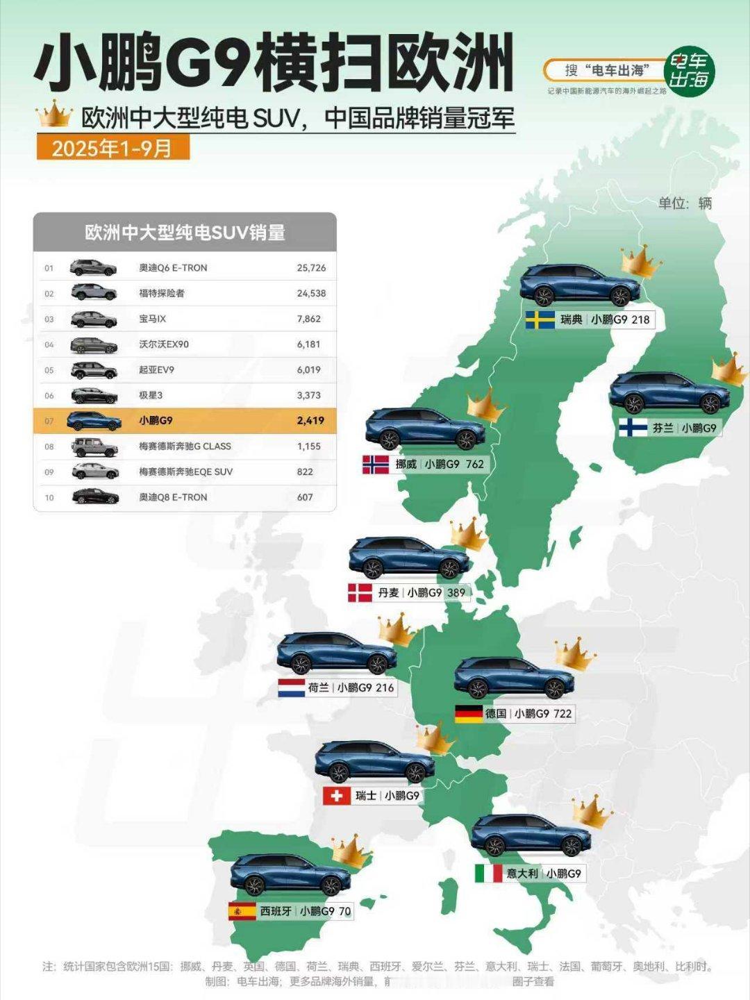 虽说小鹏出海时间短,但每一步都踩得准、走得实,这套 “全链条出海” 的打法,真的值得学习。小鹏前三季度获海外10国新势力销量第一小鹏G6和G9狂揽欧洲9国销冠大V聊车