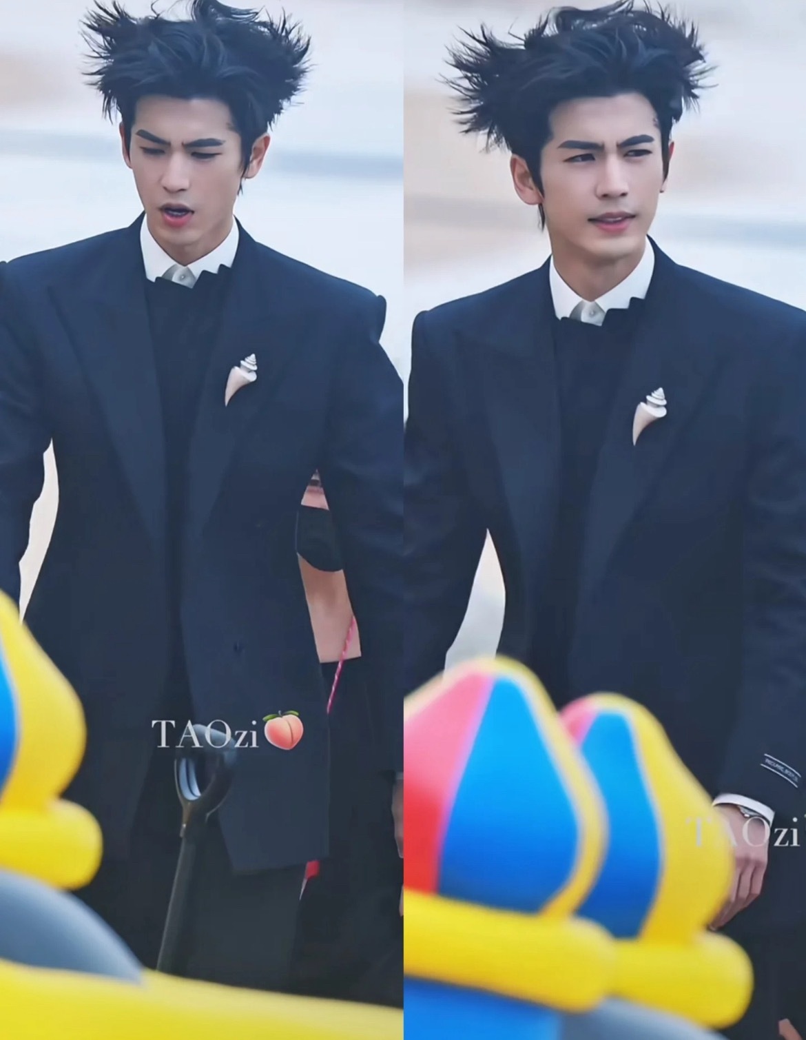 真的笑出牛叫!!张凌赫三亚 ELLE盛典路透,三亚这风也太大了!给张凌赫吹成海胆了,不得不说这脸是硬帅啊
