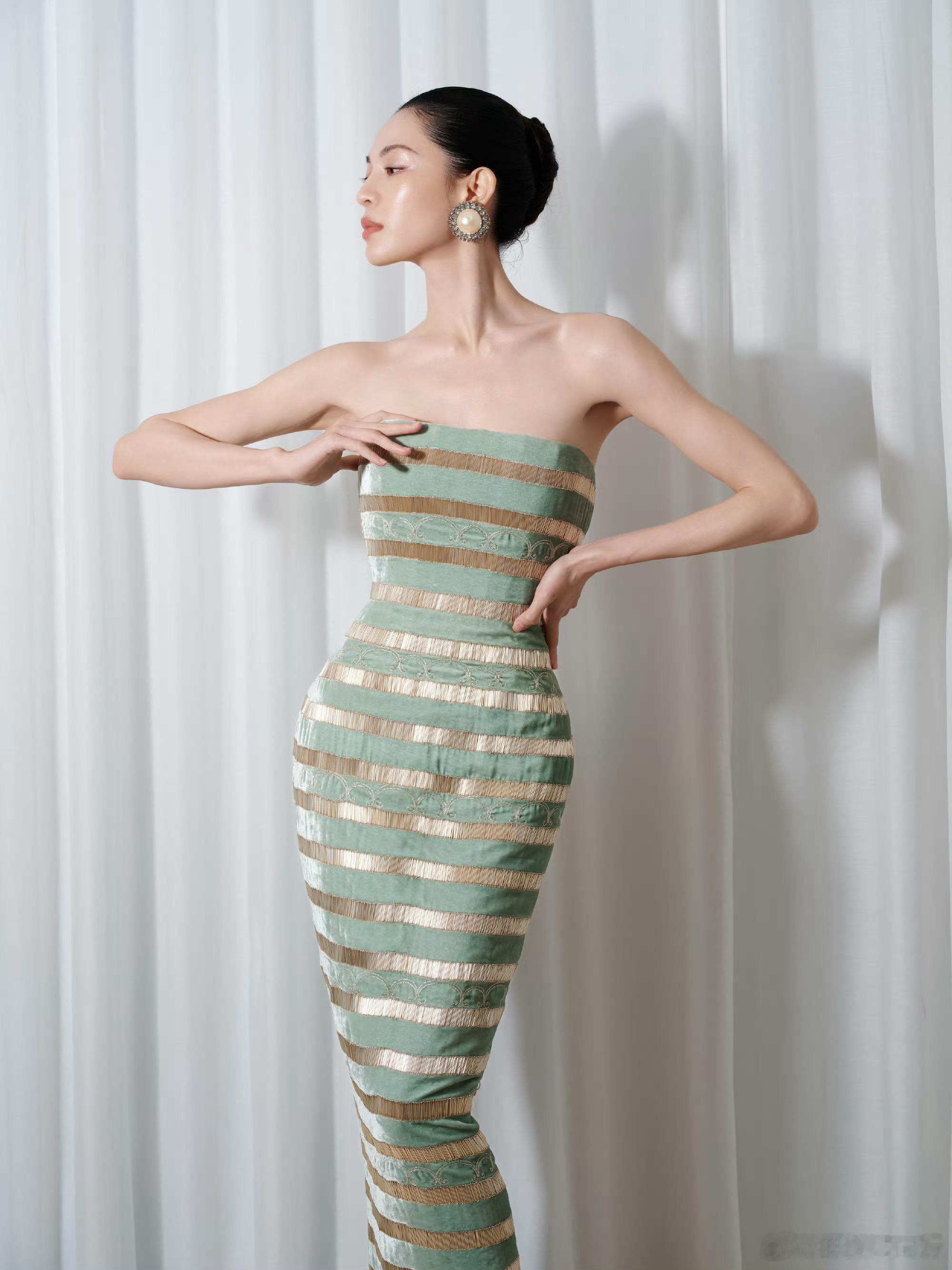 钟楚曦ELLE盛典红毯造型钟楚曦ELLE盛典造型钟楚曦ELLE盛典海边造型绝了!浅绿条纹拼接礼服登岛超清新,生图五官精致、脸部线条流畅,啥造型都能驾驭,时尚感拉满,美貌直接拿捏人~