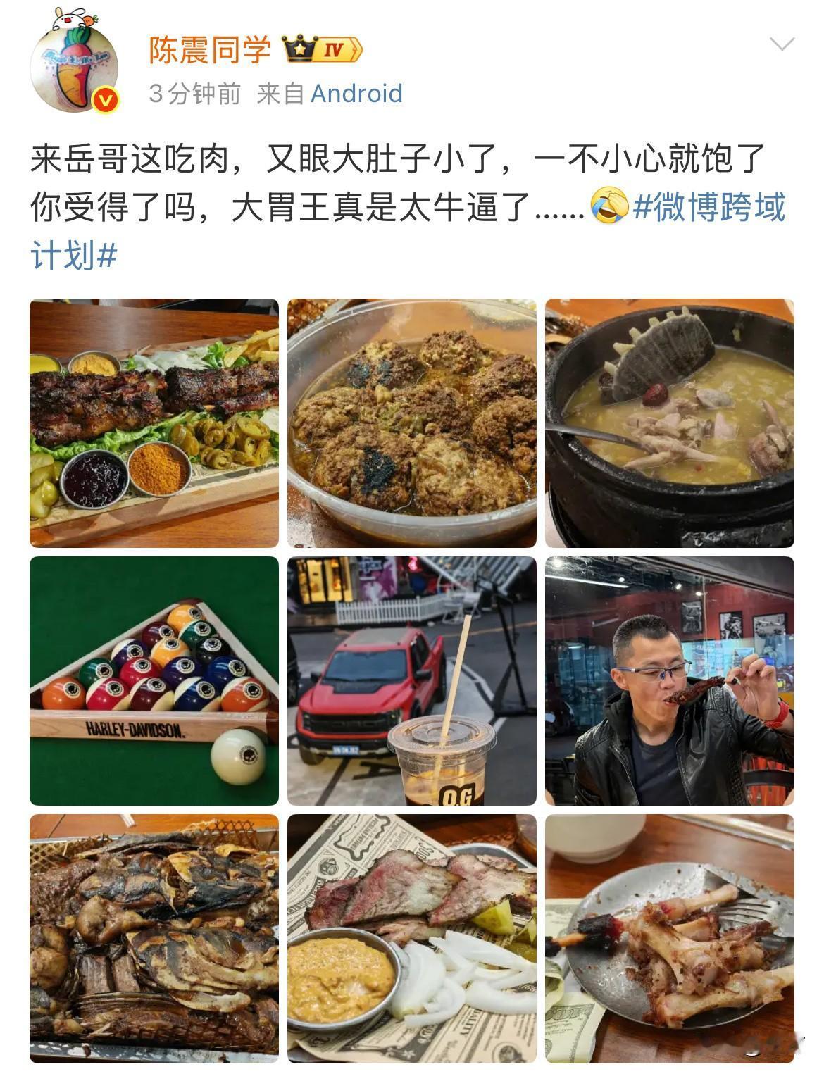 陈震: 我又眼大肚子小,这你你受得了吗! 今天晚上 ,陈震拿着一根大大的烤肉,直愣愣的塞进自己的嘴巴,不知道是不是天气寒冷的原因,现在他生酮饮食的标准好像越来越高了! 每次都点这么多肉,但是他也觉得自己有点大肚子小了,没吃几块就差不多饱了,当然,他吃肉的时候必不可少的美式冰咖啡,还得框框的往下喝! 他现在好像有点迷恋这个店了,这个月就往这个地方跑了三次,不知道是不是因为这个岳子人不错的原因,还是因为他的肉确实好吃,他每次来看起来都是饿了好久的样子,到了就咔咔的一顿炫,根本就停不下来!
