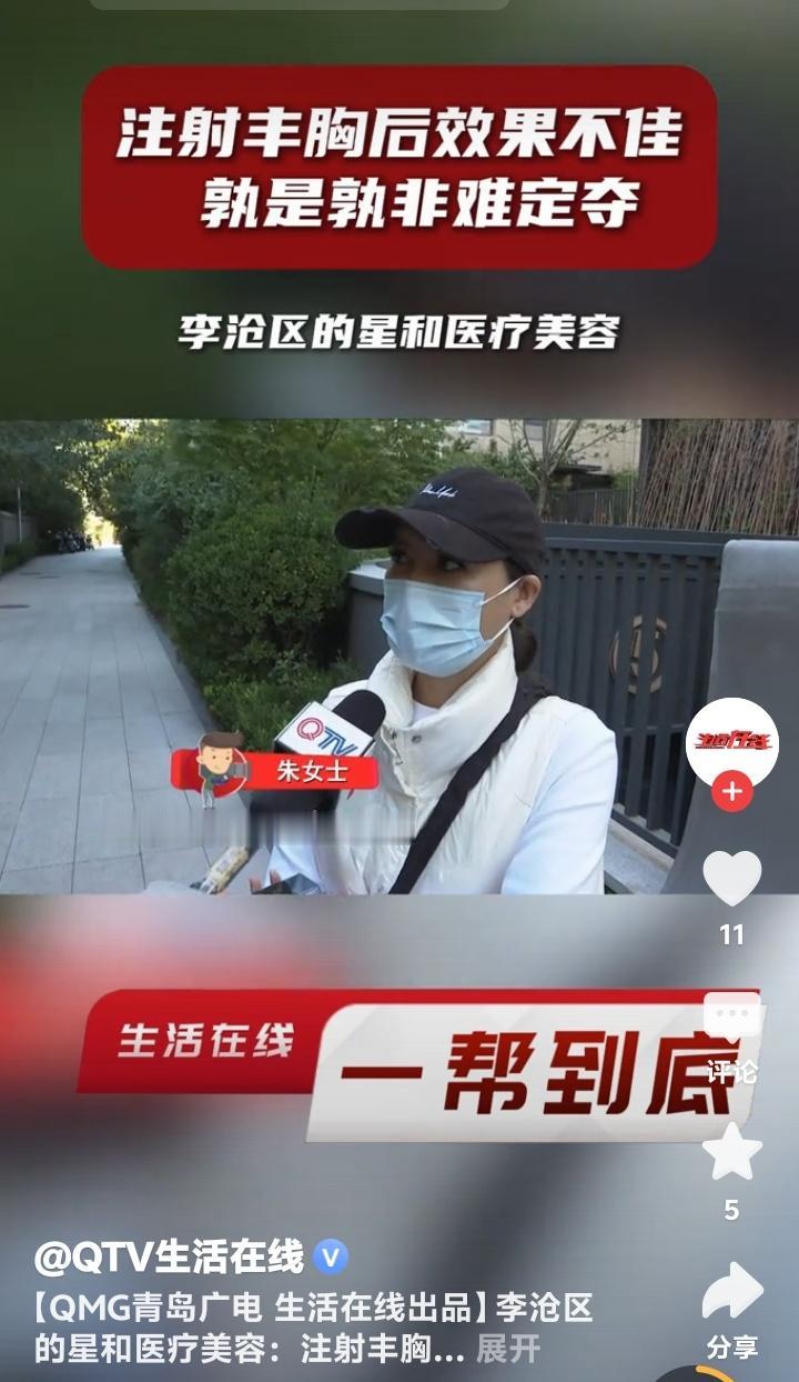 青岛李沧星和医疗美容注射丰胸维权风波:女子哭诉胸部变形硬块疼痛,机构称“个体差异
