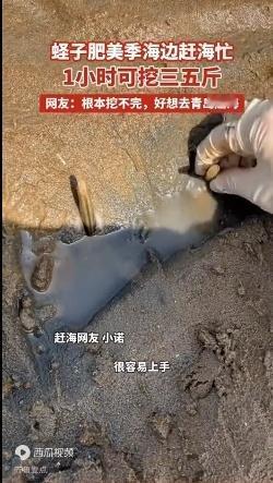 青岛琅琊台海滩惊现“蛏子风暴”!一小时狂挖五斤根本停不下来,网友直呼:这哪里是赶海,分明是海鲜自助现场! 咸腥的海风裹挟着收获的喜悦,青岛西海岸新区琅琊台的海滩上,一场属于普通人的“淘金热”正在上演。当城市人还在为周末去哪发愁时,这里的赶海人已经提着沉甸甸的水桶,脸上写满丰收的酣畅。这不是什么专业捕捞团队,而是挎着小铲、拎着盐瓶的寻常百姓,他们弯腰俯首的间隙,肥美的蛏子便接二连三地跃入桶中。 一位网名为“小诺”的赶海爱好者站在及膝的海水里,兴奋地展示着她的成果。塑料桶里密密麻麻的蛏子相互层叠,有些还在喷吐着水柱。“只要掌握方法,这片滩涂就像自家的菜园子。”她抓一把盐撒在洞口,不出十秒,蛏子便自动探出头来,这种近乎“守株待兔”的收获方式,让每个初次尝试的人都感到惊喜。 这里的蛏子个个饱满肥嫩,外壳泛着青灰色的光泽。当地老渔民介绍说,十月底的蛏子经历整个夏天的滋养,肉质最为鲜甜。它们隐藏在看似平静的沙滩下,只在退潮时露出细小的气孔。对这些“信号灯”的精准识别,成了赶海人心照不宣的致富密码。 与传统渔业不同,赶海正在演变成一种全新的休闲方式。在琅琊台的海滩上,你能看到情侣并肩挖蛏的甜蜜,也能遇见祖孙三代共同劳作的温馨。这种活动不需要昂贵的装备,一把铲子、一袋盐,就能让人在潮起潮落间找到与自然对话的乐趣。 为什么这种看似原始的采集活动能引发如此热潮?或许是因为在效率至上的现代社会,人们内心深处仍渴望着亲手获取的踏实感。当蛏子从沙土中被完整取出,那种即时反馈的成就感,是外卖软件上点击下单永远无法替代的愉悦体验。 从青岛到整个沿海地区,赶海经济正在悄然兴起。琅琊台周边的渔家乐一房难求,特色赶海工具销量翻倍。这片曾经普通的滩涂,如今成了带动当地旅游的“金沙滩”。村民们笑着说,从来没想过这片祖辈耕耘的海,能吸引这么多远道而来的客人。 随着夜幕降临,收获颇丰的人们陆续离去。海滩上飘起炊烟,刚挖的蛏子被直接送入厨房。清蒸、辣炒、做汤,每一种做法都最大限度地保留着海洋的鲜甜。围坐在一起的陌生人因赶海结缘,分享着劳动所得,也交换着各自的人生故事。 当越来越多的人被困在写字楼的方寸之间,青岛的这片海却提供了一种生活的另一种可能。它不需要高昂的成本,不设复杂的门槛,只要你在潮水退去时走进那片滩涂,就能收获大自然最慷慨的馈赠。这种简单纯粹的快乐,不正是我们一直在追寻的吗? (来源:西瓜视频、齐鲁壹点) 青岛爆料