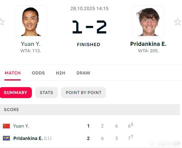 袁悦26,63,67不敌幸运落败者普里丹金娜