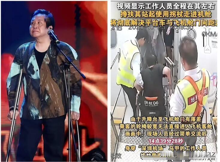 我相信郑智化是为了延续那份鼓励! 没想到,他这波又整了个大的! 当年拄着拐杖唱《水手》的身影多励志,多少人听着“风雨中这点痛算什么”挺过难关,现在开演唱会又跳又蹦,机场过安检却要坐轮椅,工作人员扶着还嫌麻烦,这落差看着真让人感慨。《水手》《星星点灯》火了三十年,他当年在央视坚持唱《水手》的那股子劲儿,咋就没了呢? 曾经用歌声给人力量的人,难道不该多一份对他人的理解吗?