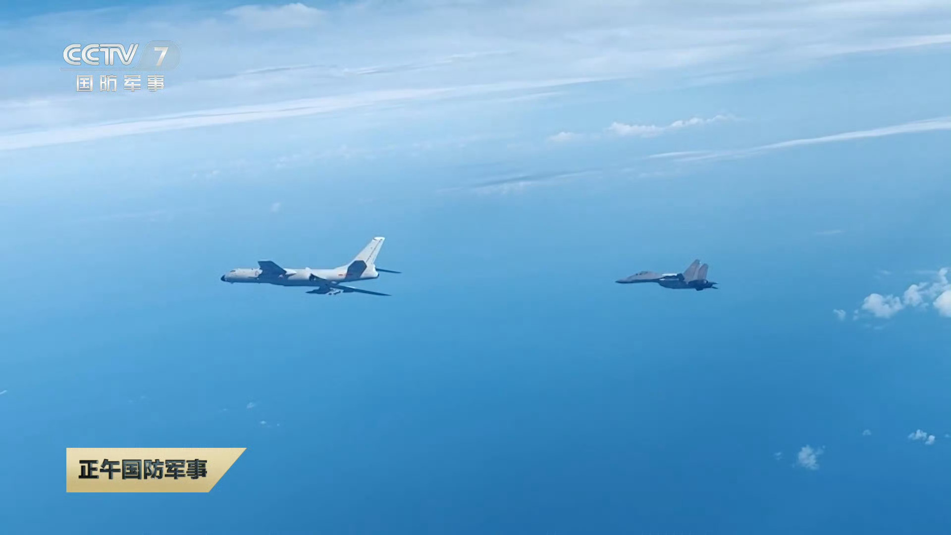 轰-6K和歼-16远海巡航,轰-6K挂的大导弹是鹰击-12,4倍音速突防,600km射程,是世界上最猛的非高超音速空射反舰导弹。(最猛的空射高超也是我们的,鹰击-21)