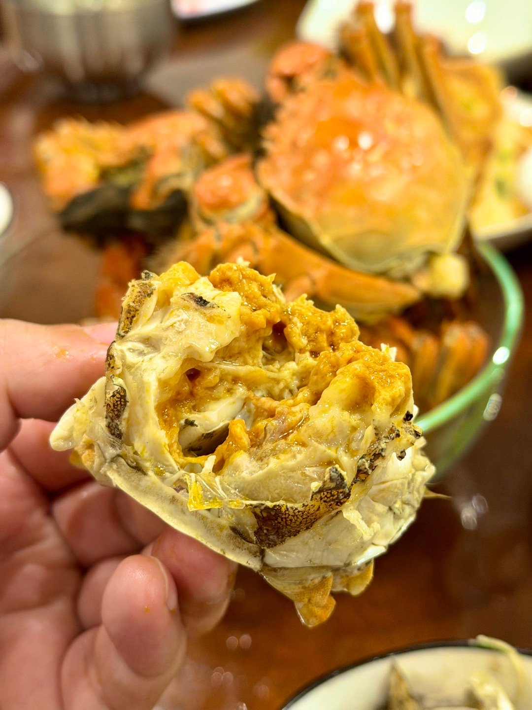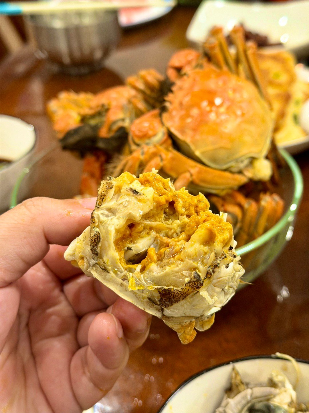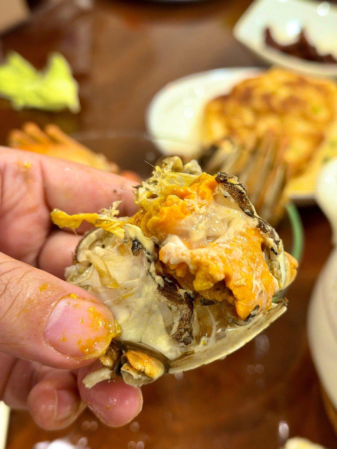 这次搞了公母搭配8只,公蟹是今年第一批,蟹膏特别带劲,一口入魂的感觉。