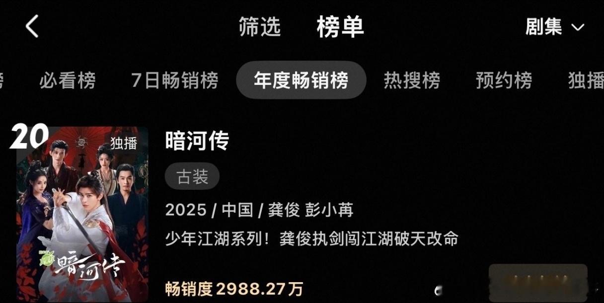 龚俊 暗河传开播第8天进入👖拉新年榜