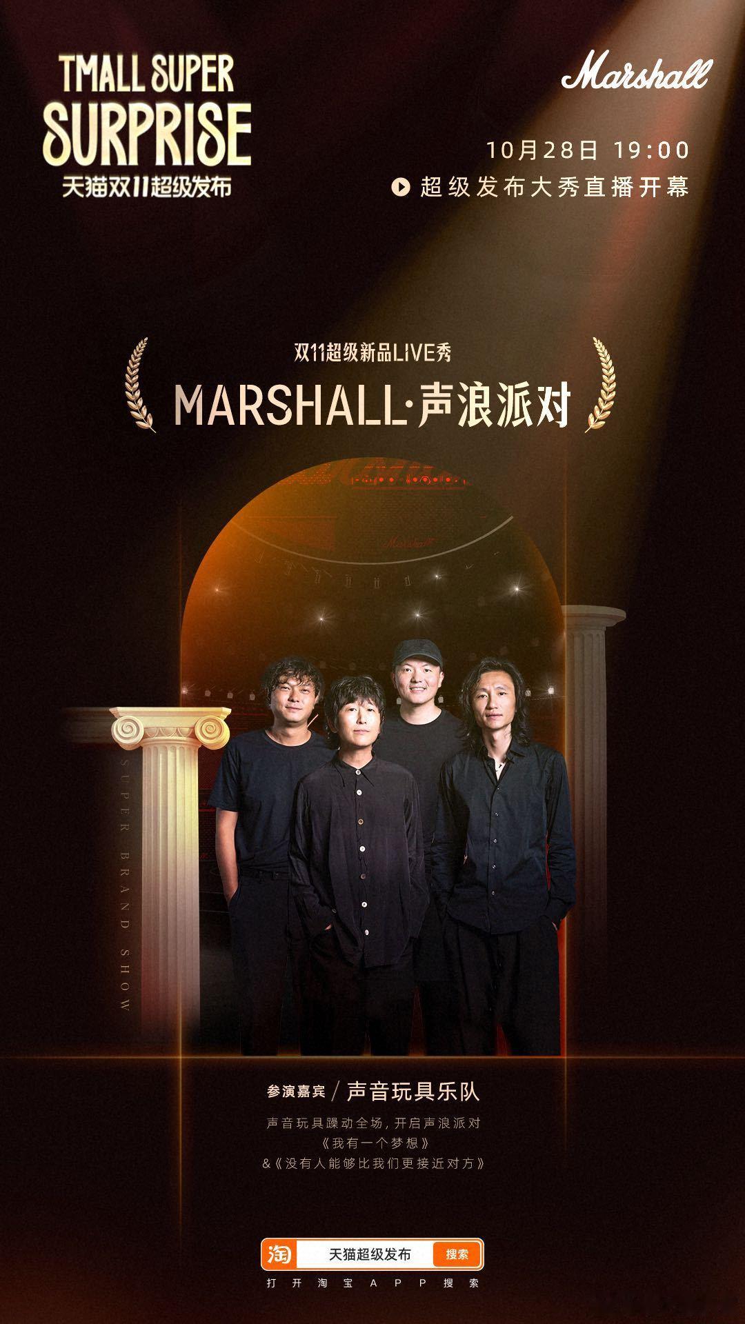 声音玩具乐队现场 梦幻联动预警!Marshall联手登陆双11超级发布舞台,复古音箱搭配艺术摇滚,唱响《我有一个梦想》与《没有人比我们更接近对方》,被这场音乐盛宴狠狠拿捏了~