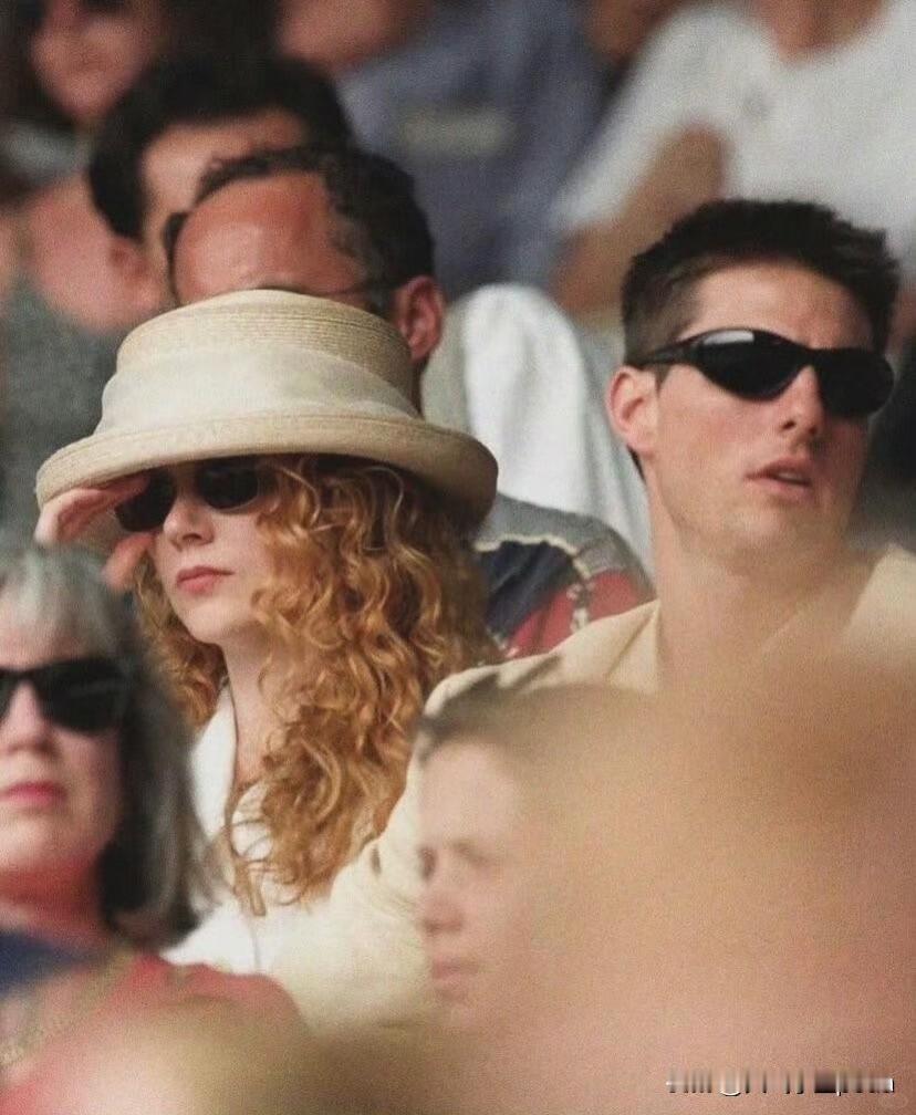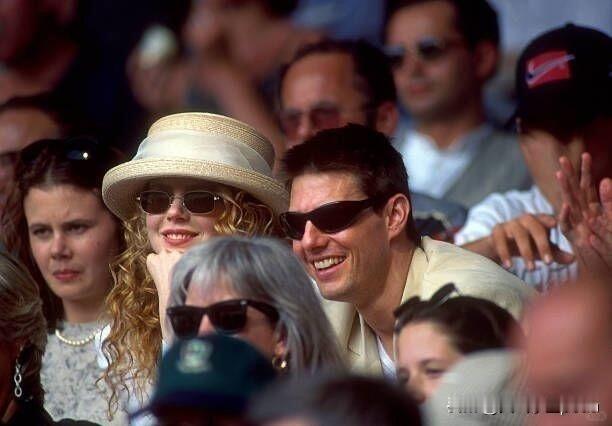 1995年的汤姆克鲁斯和妮可基德曼,真是把“金童玉女”这个词演活了! 温网观众席上,两人眼里都快滴出蜜来了——那时候阿汤还带着点少年气,妮可28岁正值巅峰,金发配眼镜又知性又美艳,简直绝杀。 现在回头看,这些甜蜜瞬间都带着时代的滤镜,谁能想到后来故事的发展呢。 真是美好又唏嘘啊。