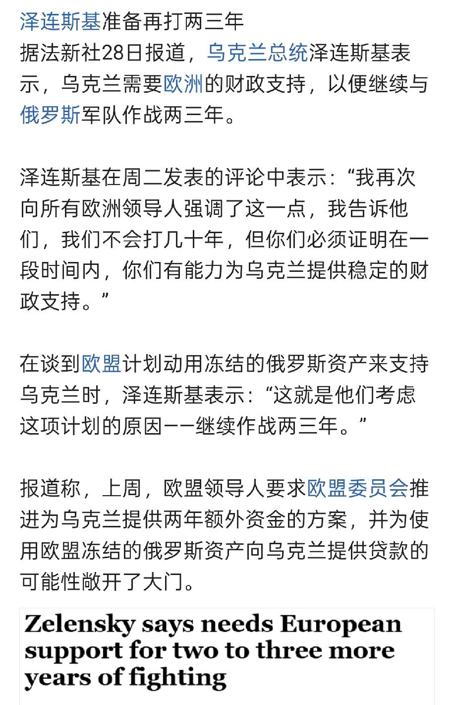 泽连斯基准备再打两三年,而老美总统任期一届4年,现在特朗普快干了一年,那三年后老