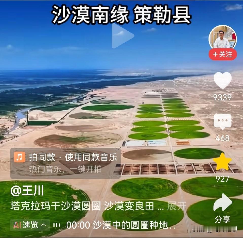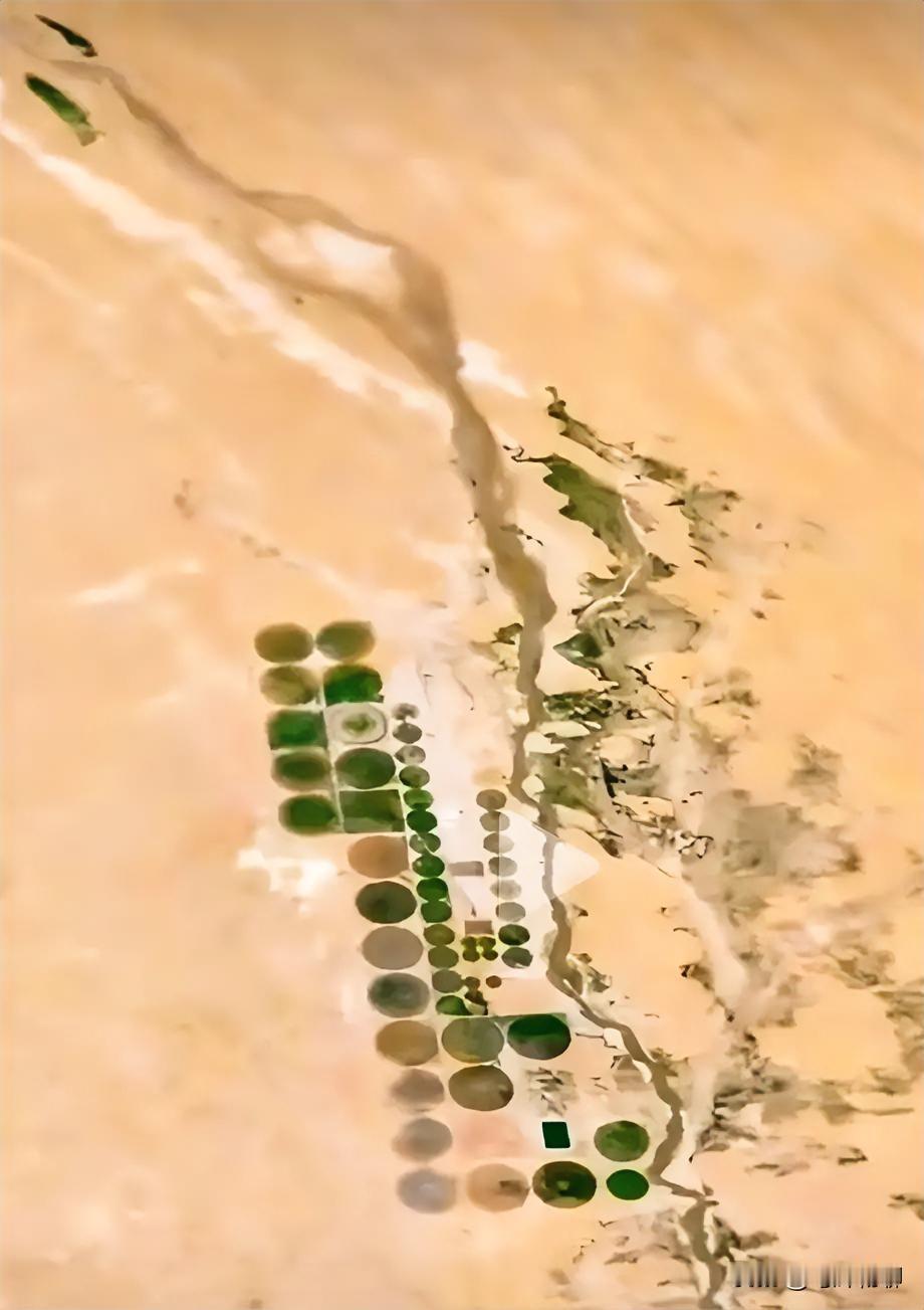 知道这是什么吗?在我国塔克拉玛干沙漠边缘,有一串这种圆形的图案,从高处看特别显眼。这其实是我国新疆的圆形农田,据说它在中东那边早就有了,特别适合沙漠地区农业种植,只是没想到新疆也有了,这学习速度还挺快! 可能有人会问,为啥要把农田搞成圆形,搞成正常的农田不行吗?当然不行,这其实是中心支轴式喷灌机技术,从中心点画圆弧进行喷灌,能够把所有庄稼都照顾到,这样可有效节水30%-50%,同时还能减少沙漠土壤的板结,有针对性地给土壤浇水施肥。 据说新疆现在已建设类似农田约10万亩,这可是利国利民的大工程,不仅能有效遏制沙漠,还能给当地百姓创业创收,真是一举两得。大家说是不是?(图片来自网络)塔克拉玛干绿化 库布其沙漠治沙 沙漠种水稻 新疆沙漠大米 沙漠改造农田 沙漠生态农业 绿锁塔克拉玛干