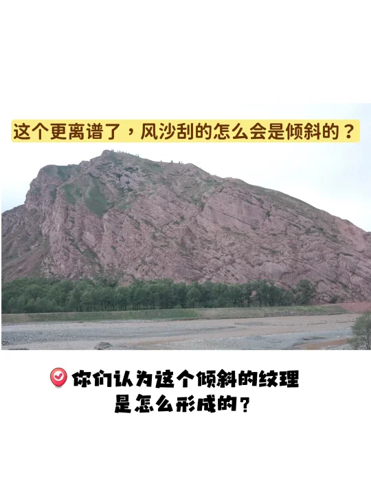 故事简述:我一开始以为山体横向的纹理都是风蚀作用形成的,还很自信地跟同行的朋友讲解。结果后面通过一个【纹理倾斜】的山体,顿悟发现那其实是【沉积岩】。