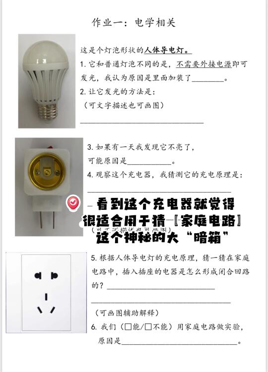 看到这个导电灯的充电器就觉得它太有助于理解【家庭电路】这个神秘大【暗箱】了