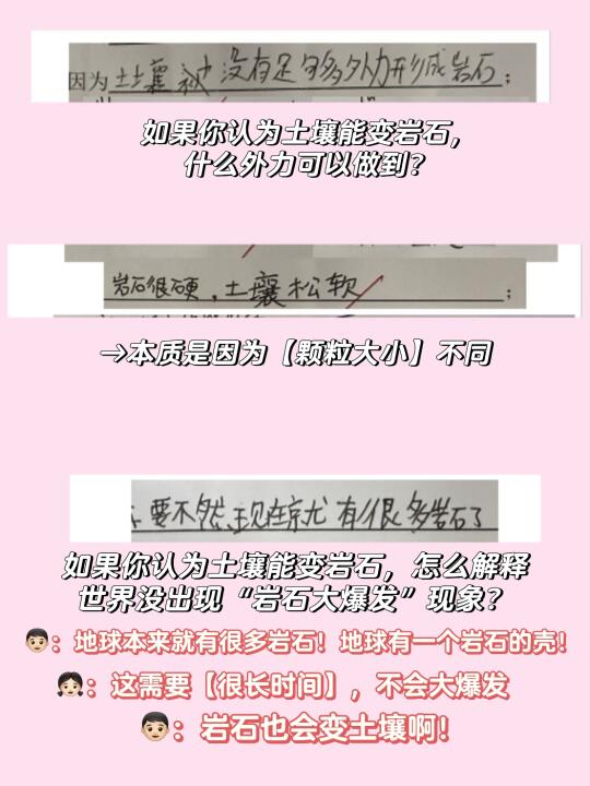 👦🏻:土壤可以变岩石,因为土壤弄湿变干后会【结块】