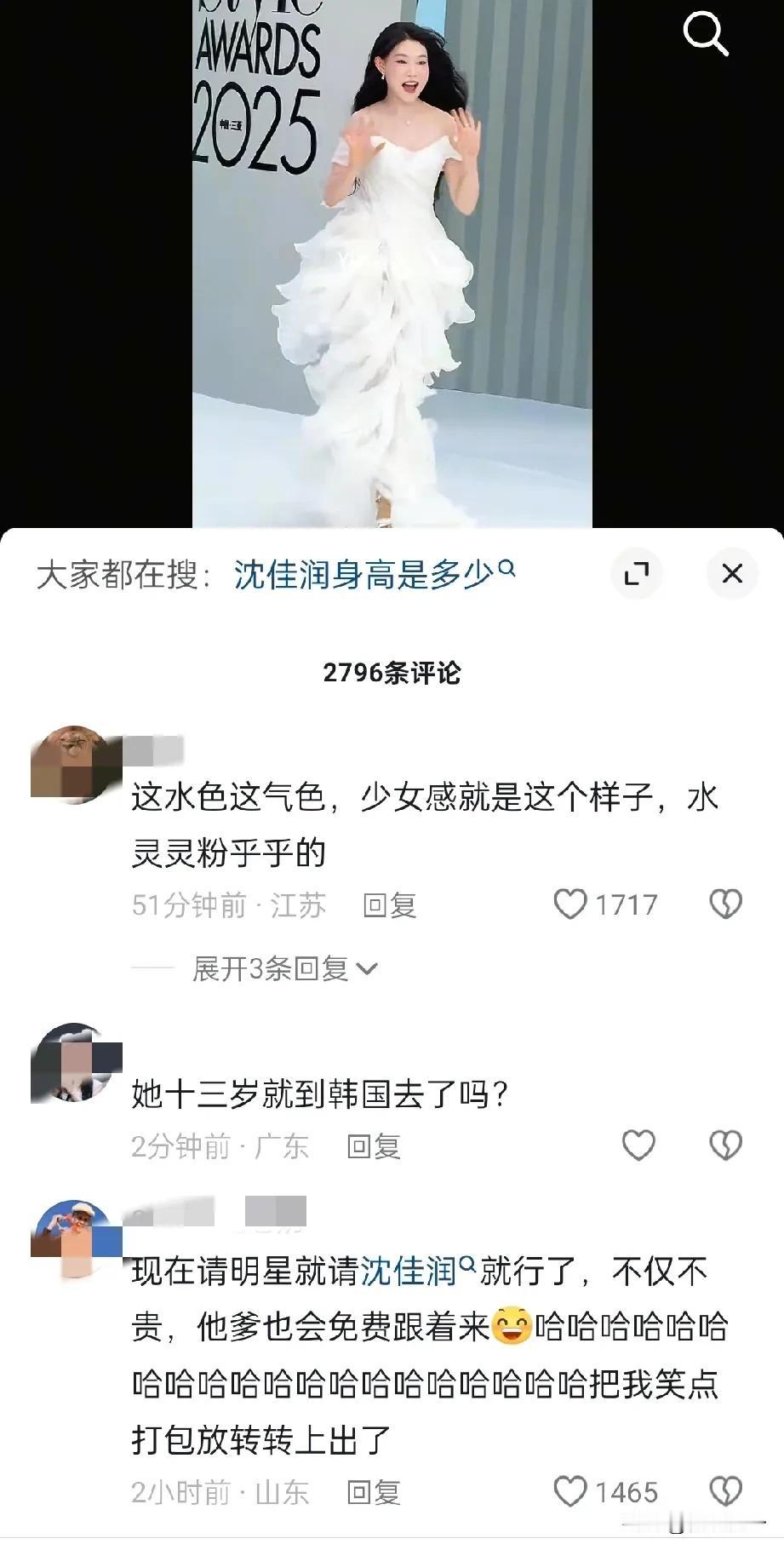 18岁沈佳润首个红毯可谓是相当成功啊 落落大方直接被全网夸,定点走超了都被网友说可爱,在看同场的四个网红直接被嘲小家子气。 不得不说观众缘真的是玄学啊! 星二代中不是最美也不是最丑,却偏偏是观众最喜欢的一个。 第一场红毯活动就把她夸出花了!