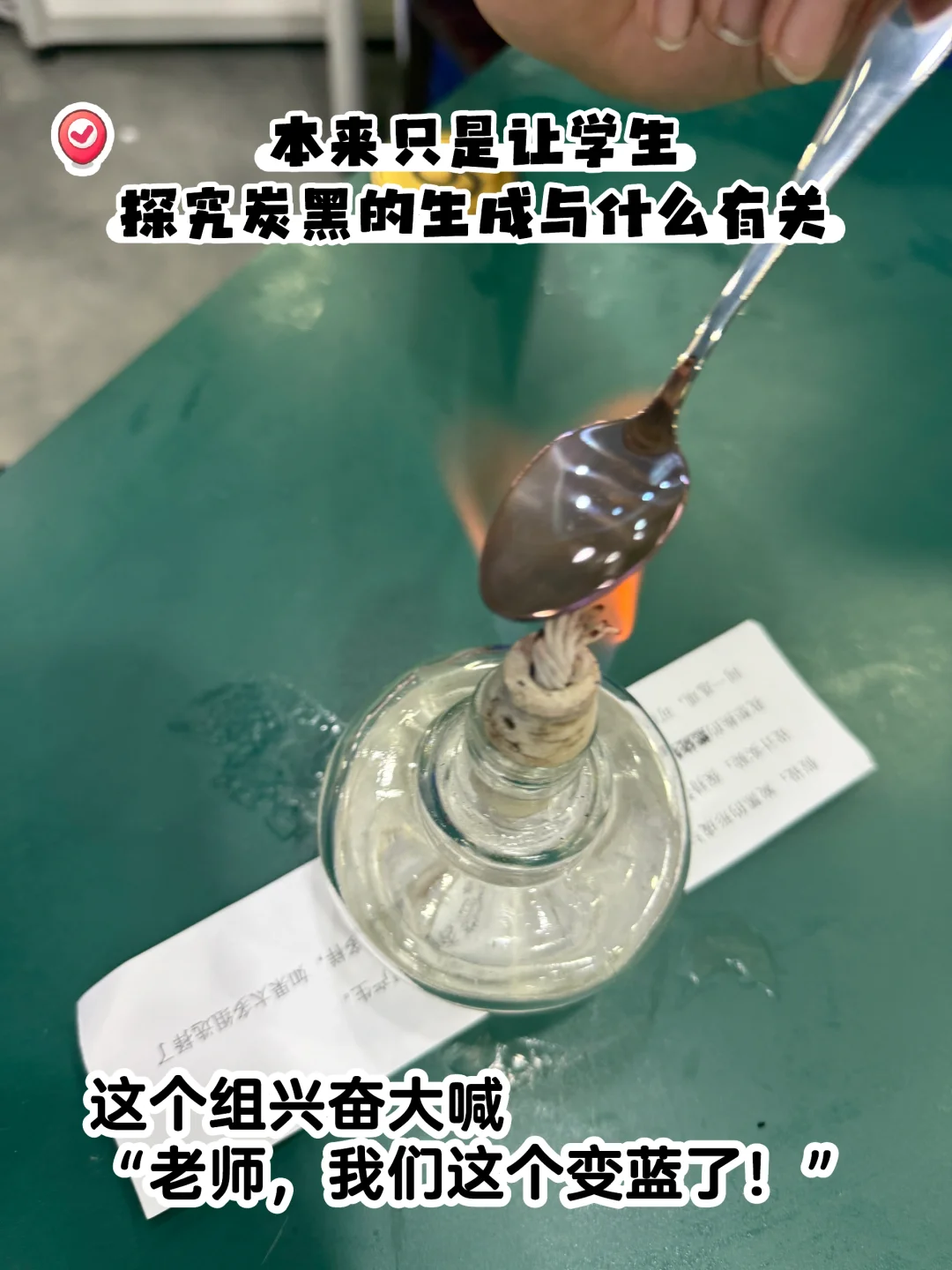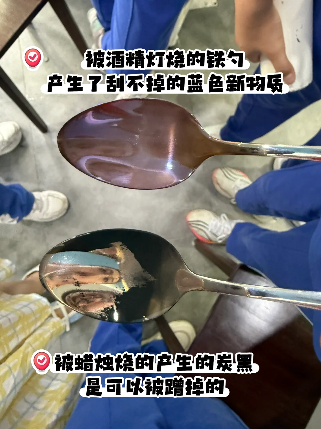 组合是【酒精灯➕铁勺】的小组,发现【铁勺变蓝】了!
