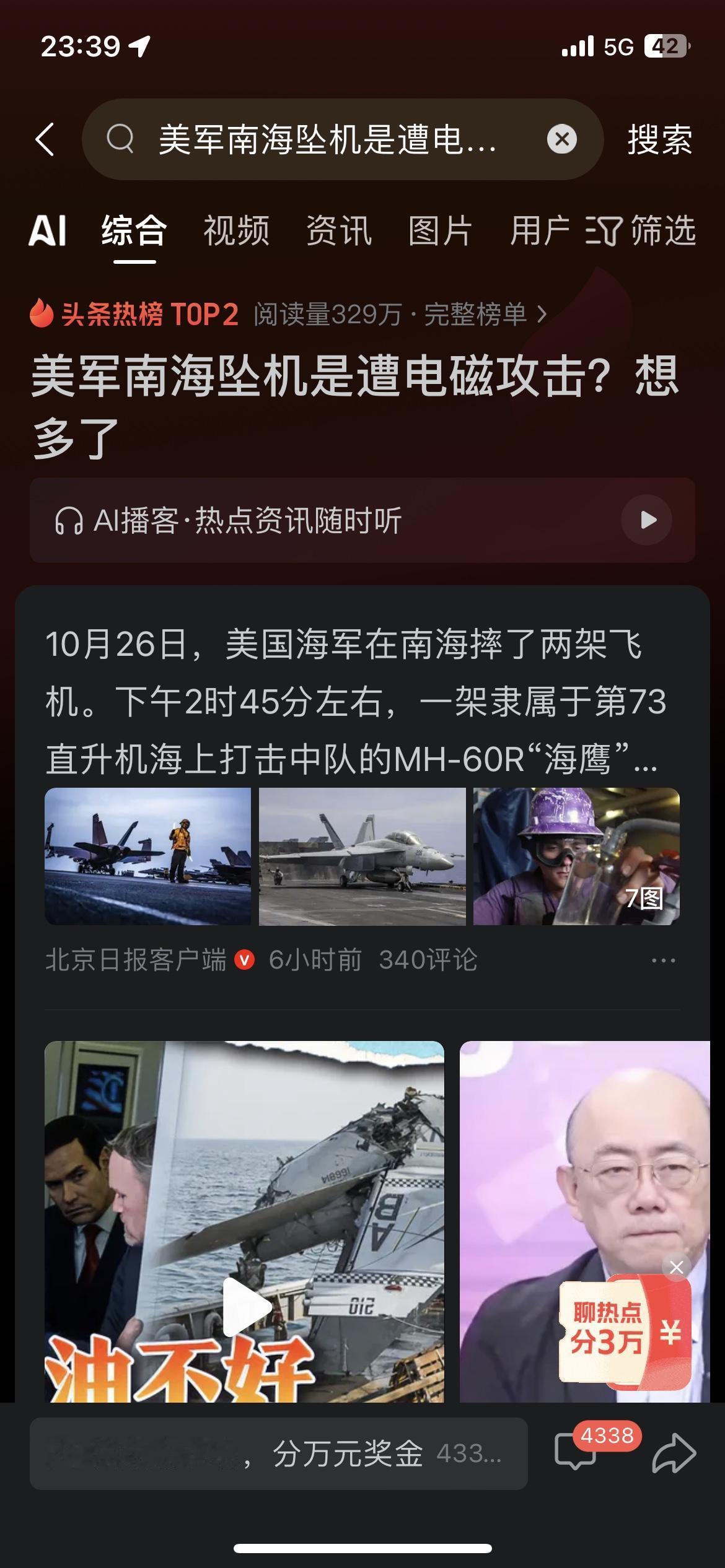 刚爆!美军2架飞机在南海摔了! 美军战机坠毁 美国飞机坠毁 美军战机坠毁 10月26日下午刚发生的事!美军在南海连摔两架飞机,其中一架还是“海鹰”直升机。 现场甲板上都乱成一团,机组人员全慌着撤离,这南海最近咋老出美军的事? 你觉得这坠机是纯属倒霉,还是别的啥原因? 南海附近跑船的可得多盯着点,这种突发状况太吓人了!