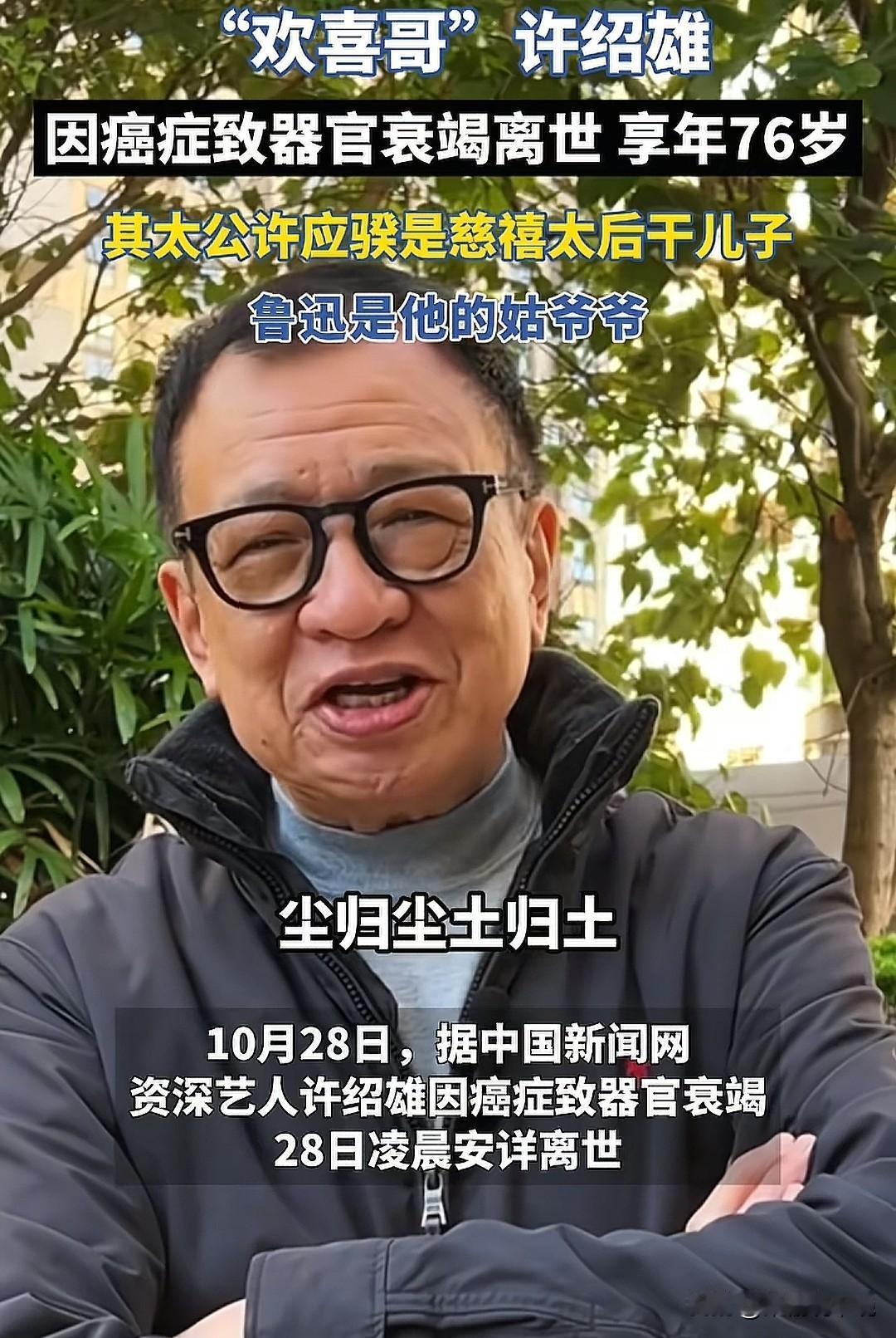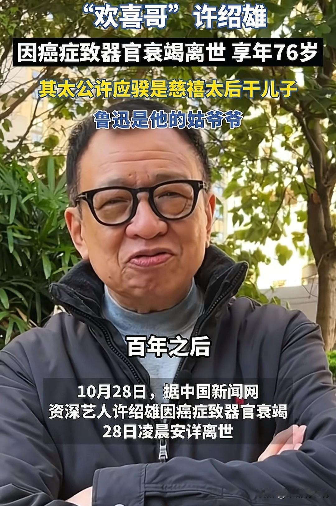 许绍雄从不主动提及他和鲁迅的关系 也不主动提及他所获得的荣誉 但是他说过这样一段话让无数人共鸣,他说: 人生最大的遗憾,不是错过了你最在乎的人 而是错过了最在乎你的人 好好珍惜现在对你好的人 有的人讲完一声再见 这辈子就再也不见了! 三十岁以后,每次看到这段话都不胜感慨 突然发现我们这个年龄段的人 所熟悉的世界正在慢慢消失! 也越来越觉得眼前人的弥足珍贵!
