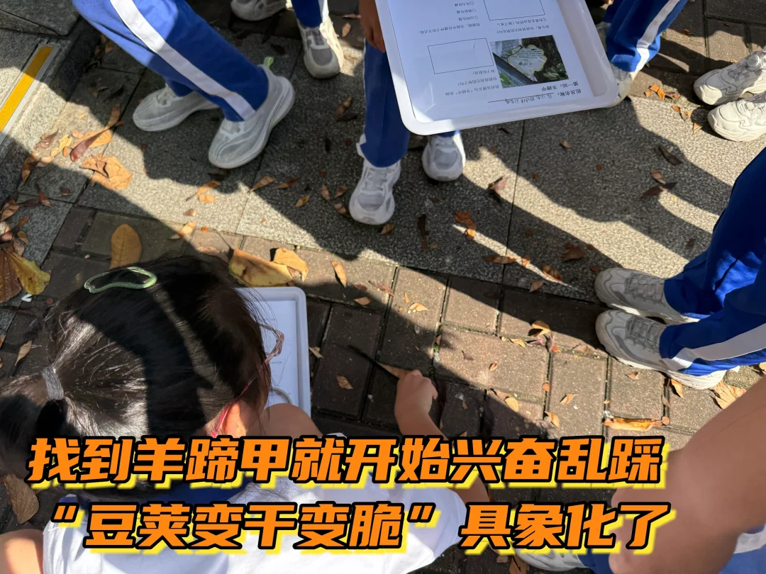 一到树前看到一地的豆荚,学生就兴奋起来了