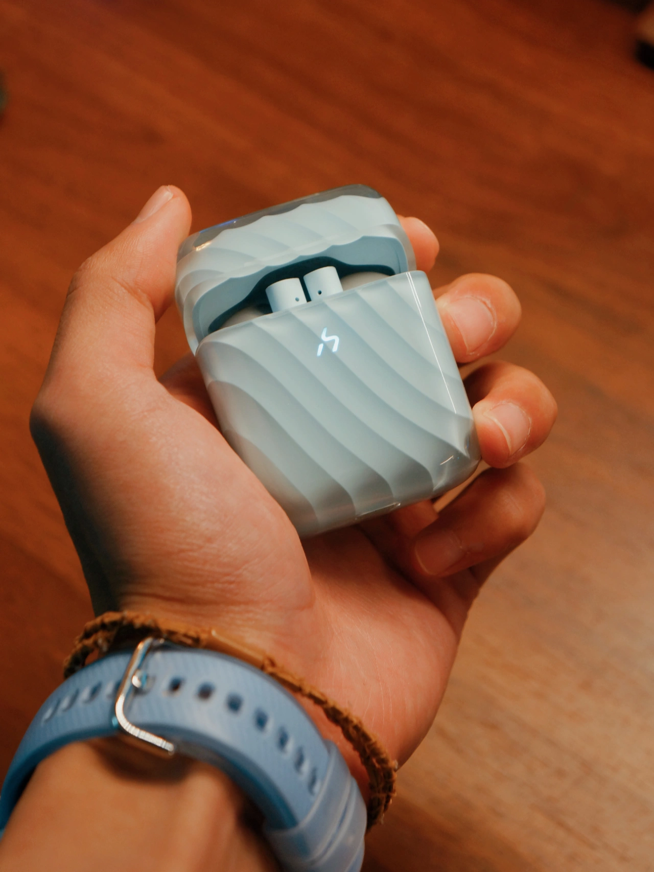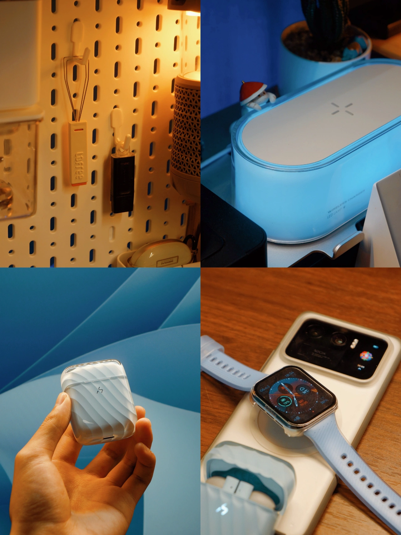 🎧发现还是比较喜欢半入耳式的耳机,长时间的使用压力较小,轻巧的耳机主体佩戴也比较舒适。而且耳机这透明水波纹的设计,冰酷的感觉也很融洽我的桌面,刚好最近手表也是用的冰川腕带,感觉日常出行使用也很搭哇。