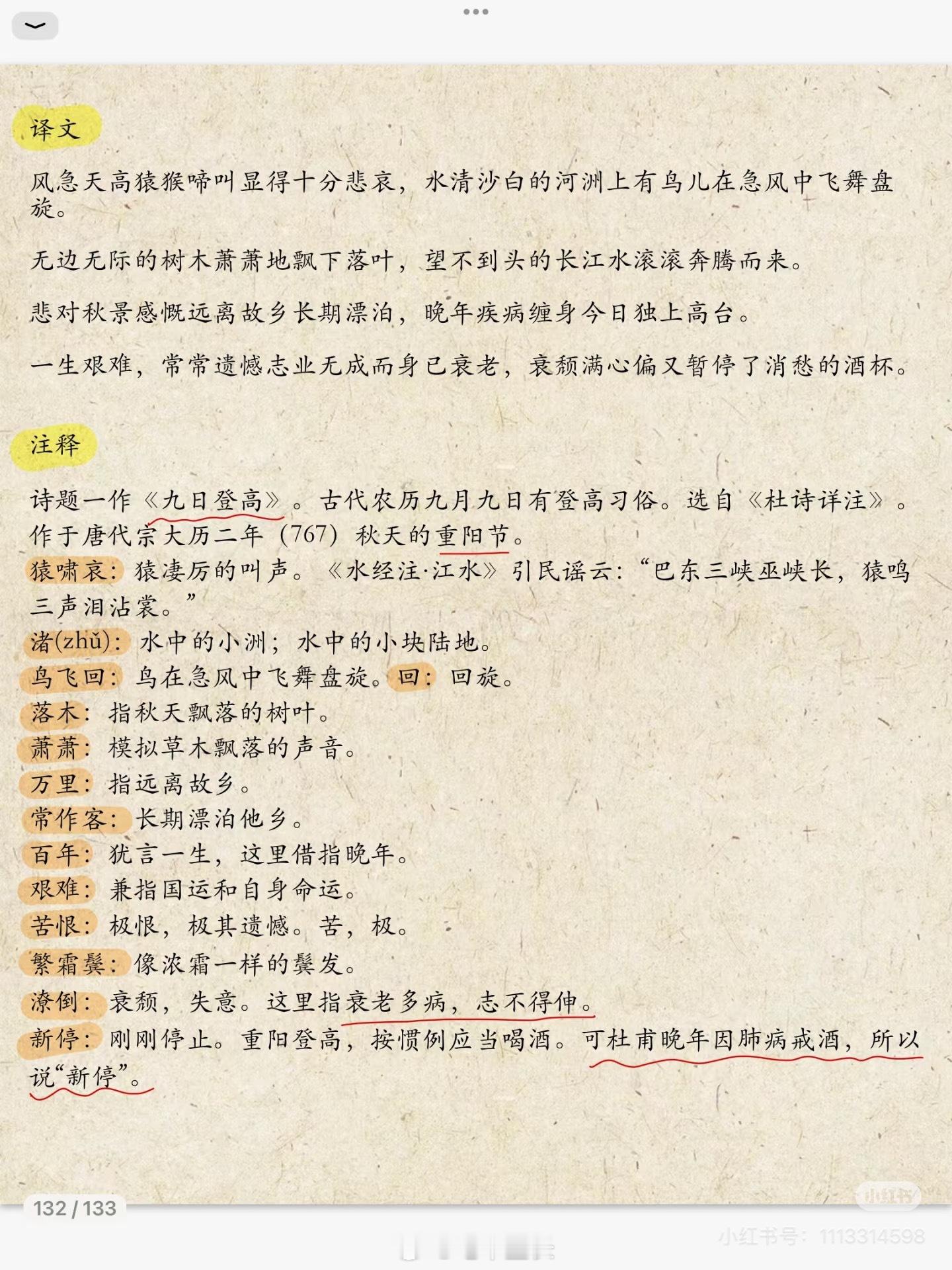 9月初9重阳,脑子里突然蹦出了《登高》,还一字不差地背出来了。带大家复习一下当年的高中语文必背古诗。