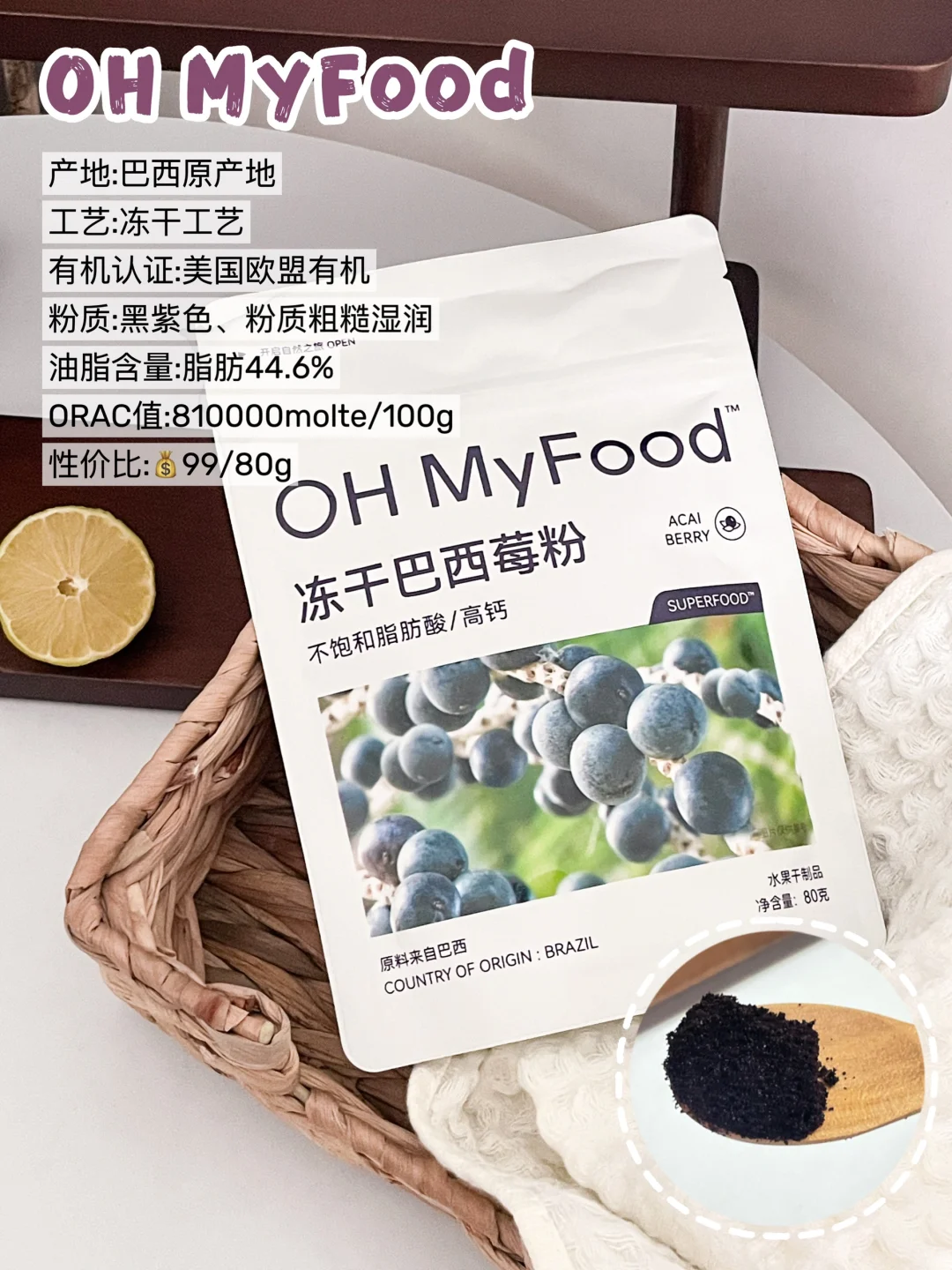 市面上的热门巴西莓粉有冻干工艺、RWD工艺、高温喷雾工艺,冻干工艺是保留性相对更佳,营养物质留存更全面,没写工艺的求你们都别入手
