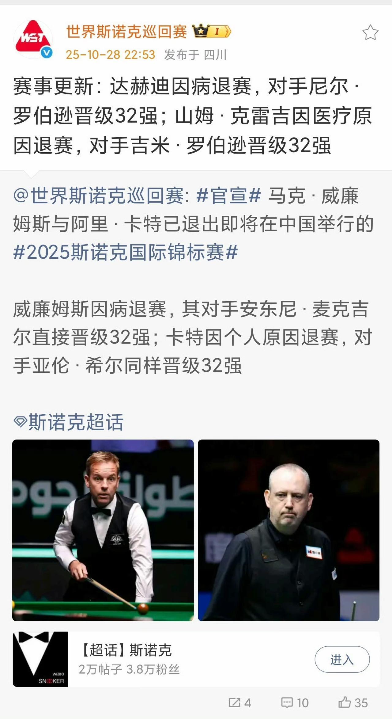 这下球迷放心了!赵心童一整个星期都在维多利亚斯诺克学院努力训练,和不同的球员交手。 相信赵心童此次国锦赛必然会大放异彩,另外还有4名球员退赛:马威、卡特、达赫迪、克雷吉。