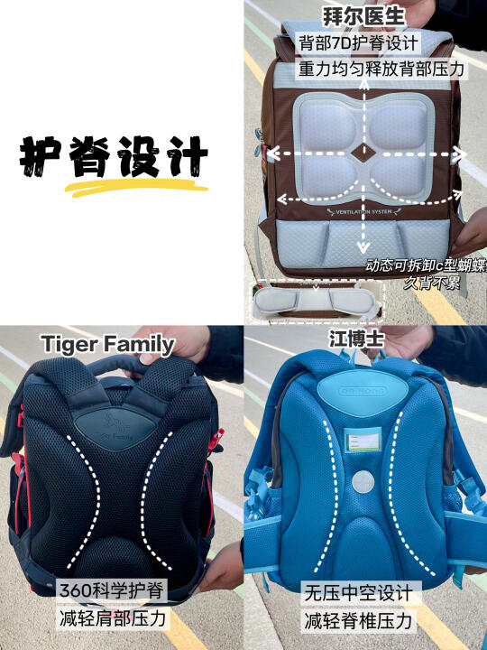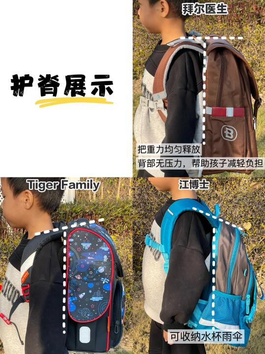妈妈们肯定都深有体会吧 孩子现在上学除了无形的压力还有来自书包的压力😅 书包里除了课本还要带水杯带雨伞带衣服... 换谁谁没压力,分分钟都累 👉🏻建议大家都买一个护脊减压的书包 不仅没那么辛苦,而且对孩子的体态也好 新年的书包我都买了,今年和大家讲讲怎么选吧👇 1⃣️首看“护脊”符合人体工学设计的,与脊椎曲线贴合✅保护脊椎的同时能分散书包压力,有c型护翼的更好,久背不累 2⃣️有支撑脚的且肩带宽的,不仅稳定不易倒,而且肩带宽的不勒肩 3⃣️容量选择大的,多层分区能收纳孩子的课本📖文具和衣服 4⃣️书包材质应选择防水心 防污材质,雨天也不怕淋湿课本💦防泼水的牛津布就能很好的预防这一点 5⃣️安全设计,选择有反光条设计的书包,灯光照书包反光条就能看到孩子,家长也放心些 6⃣️适用年级,买1-6年级适用的可以用得更久,肩带长度可以根据孩子年龄去调节的 😊我家儿子的新年开学书包是选了拜尔医生的护脊书包,德国IGR护脊认证,背部自带7D护脊👍可以很好的释放背部压力,不用担心小朋友弯腰驼背,让孩子有个好的上学形象
