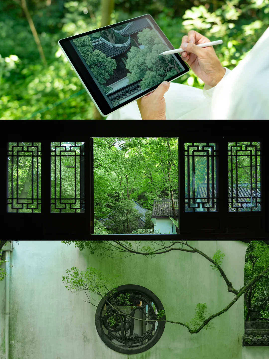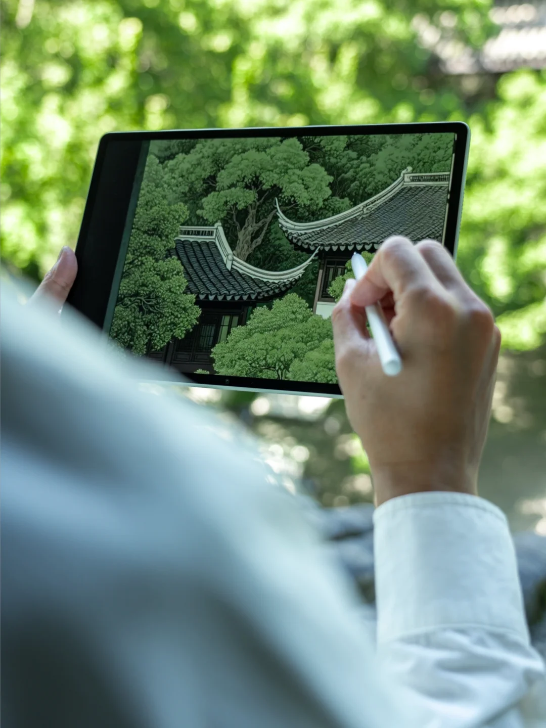 在六和塔上,用触控笔勾勒竹影的弧度,让每一片绿叶都自带呼吸感,画布即风景。